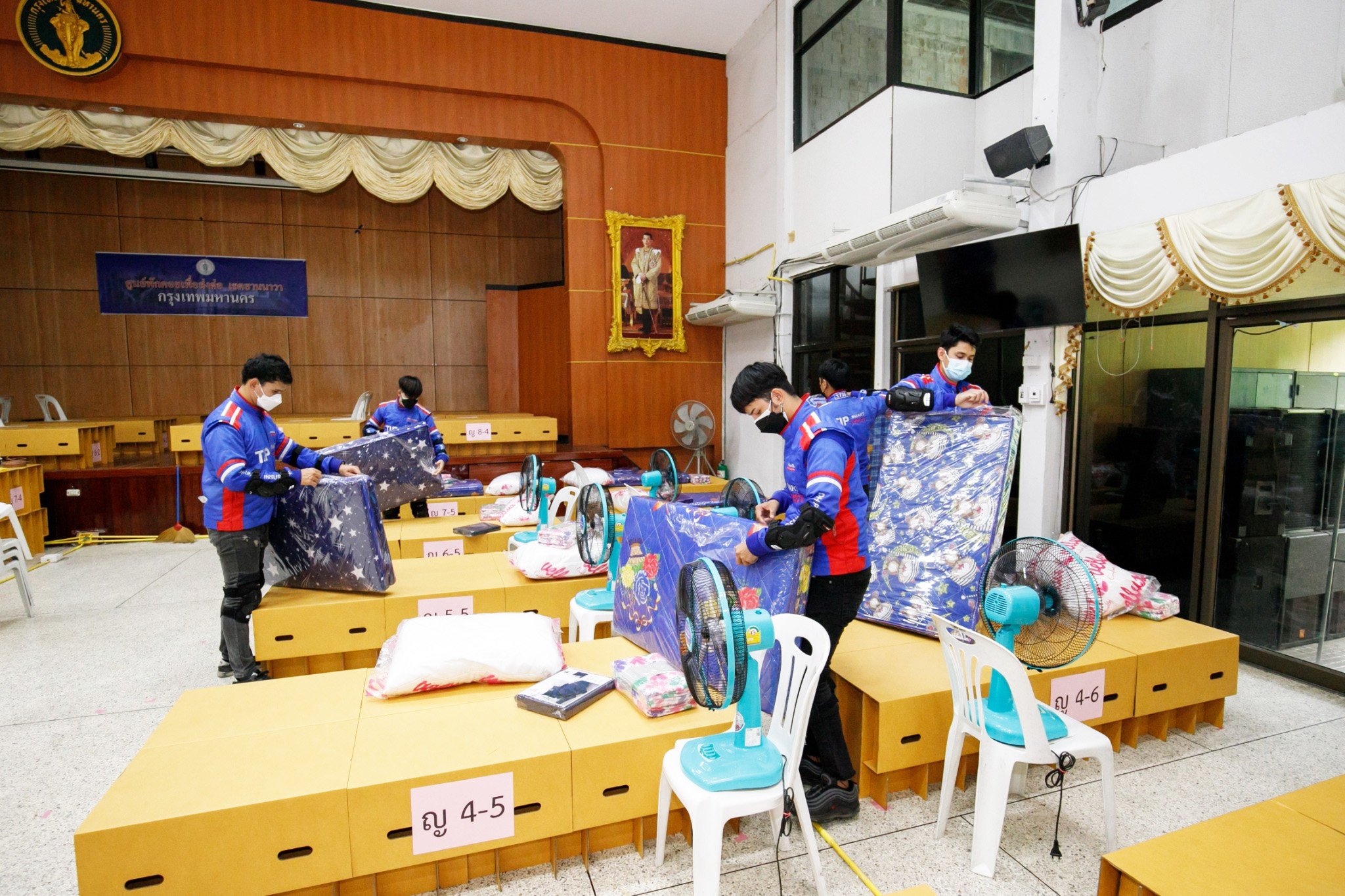 20 กรกฎาคม 2564 : ทิพยประกันภัย สนับสนุนการจัดตั้งศูนย์พักคอย (Community Isolation) ที่สามารถรองรับผู้ติดเชื้อโควิด-19 จำนวน 100 เตียง ในพื้นที่ยานนาวา พระรามสาม โดย คุณอาคม ไม้ดัดจันทร์ ผู้ช่วยกรรมการผู้จัดการใหญ่ ทิพยประกันภัย มอบอุปกรณ์ของใช้ สำหรับผู้ติดเชื้อไวรัสโควิด-19 อาทิ ที่นอนพร้อมชุดเครื่องนอน มุ้ง พัดลม ในโครงการ TIP ZONE จำนวน 100 ชุด ให้กับ คุณภาวนา ใจเสงี่ยม ผู้อำนวยการเขตยานนาวา โดยมี คุณอรชา มุ้ยเสมา ผู้ช่วยผู้อำนวยการเขตยานนาวา และ คุณอิทธิพล อิงประสาร ผู้ช่วยผู้อำนวยการเขตยานนาวา ร่วมรับมอบ ณ ศูนย์พักคอย หอประชุมโรงเรียนวัดดอกไม้ ยานนาวา กรุงเทพฯ