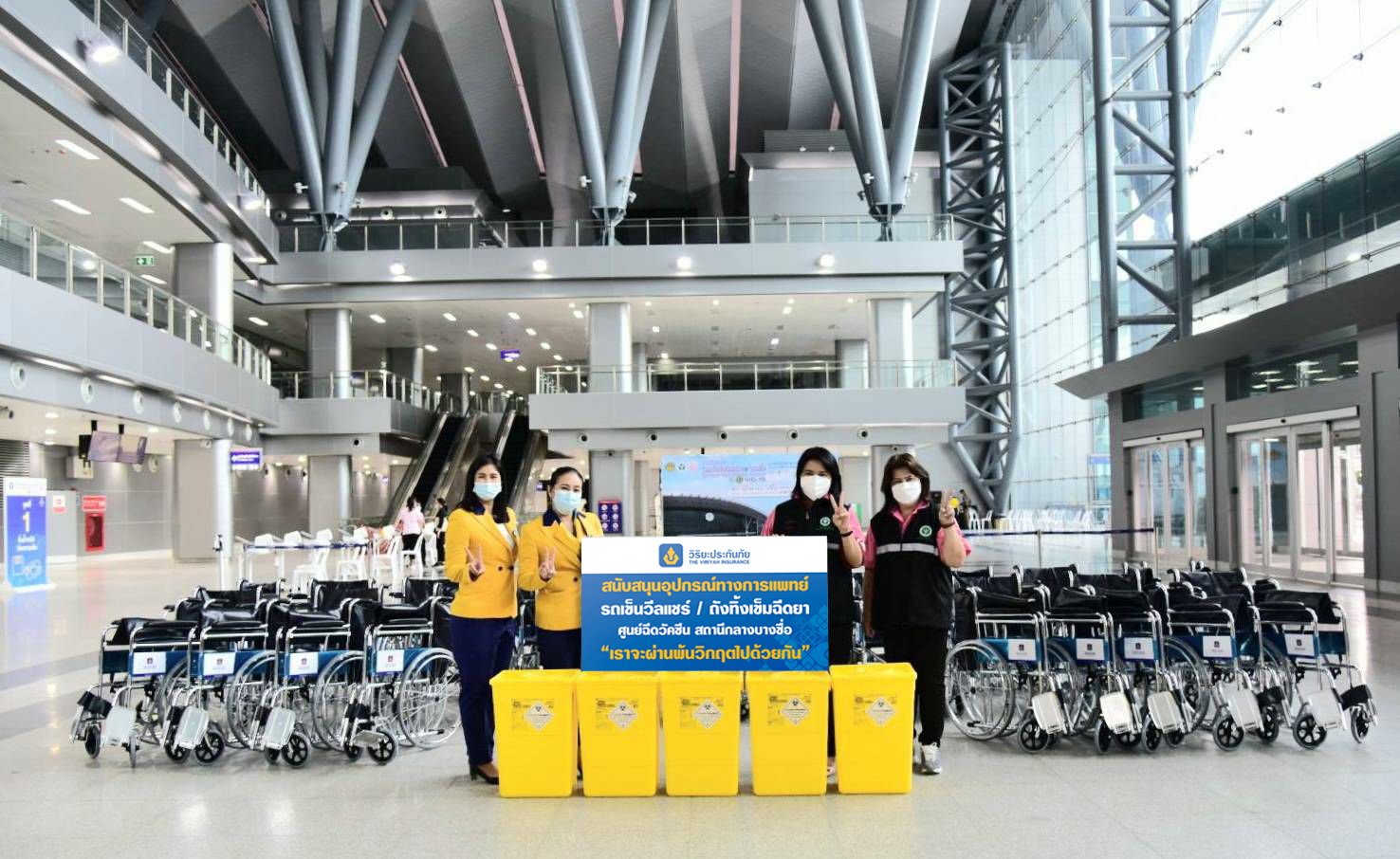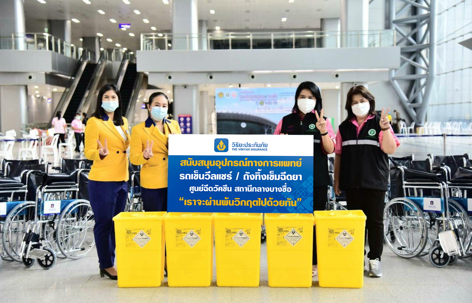 21 กรกฎาคม 2564 : แพทย์หญิงมิ่งขวัญ วิชัยดิษฐ ผู้อำนวยการสถาบันโรคผิวหนัง และผู้อำนวยการศูนย์ฉีดวัคซีนกลางบางซื่อ รับมอบรถเข็นวีลแชร์และถังทิ้งเข็มฉีดยา จากบริษัท วิริยะประกันภัย จำกัด (มหาชน) โดยมี นางสาวพรพิมล จำปาพุด เจ้าหน้าที่ปฏิบัติการฝ่ายปฏิบัติการภาค 6 (ภาคกรุงเทพฯ) ด้านสาขาเป็นผู้แทนบริษัทฯมอบเพื่อนำไปใช้อำนวยความสะดวกให้แก่ผู้พิการและผู้สูงอายุที่มาใช้บริการฉีดวัคซีนโควิด-19