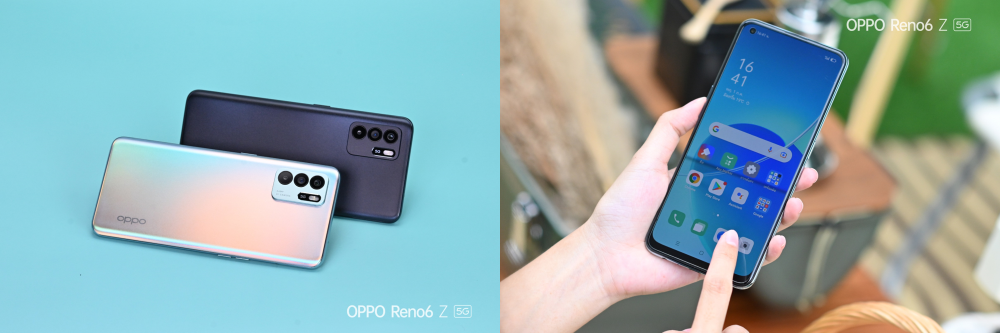 โดย OPPO Reno6 Z 5G อัดแน่นด้วยนวัตกรรมสุดล้ำ อาทิ AI 3 กล้องหลัง ความละเอียด 64MP กับฟีเจอร์ Bokeh Flare Portrait และ Portrait Beautification Video มาพร้อมดีไซน์สุดบางเบาและฝาหลังที่เปล่งประกายระยิบระยับ ด้วยเทคนิค Reno Glow มอบความโดดเด่นทุกมุมมอง และยังมีเทคโนโลยีชาร์จเร็วอันเป็นเอกลักษณ์ของออปโป้กับ 30W VOOC Flash Charge 4.0