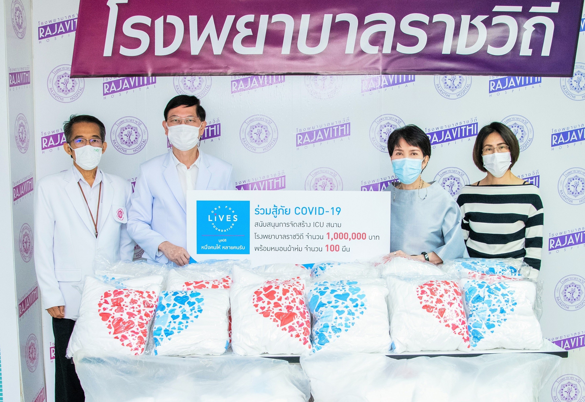 28 กรกฎาคม 2564 : ภาสินี ปรีชาธนาพล กรรมการและเลขานุการ มูลนิธิหนึ่งคนให้ หลายคนรับ มอบเงินบริจาคจำนวน 1,000,000 บาท แก่นายแพทย์สมเกียรติ ลลิตวงศา ผู้อำนวยการโรงพยาบาลราชวิถี เพื่อสนับสนุนการจัดสร้าง ICU สนาม สำหรับรองรับการรักษากลุ่มผู้ป่วยหนักโรคโควิด-19 และมอบหมอนผ้าห่ม จำนวน 100 ผืน สำหรับผู้ป่วยโรคโควิด-19 ที่เข้ารักษาในโรงพยาบาลสนามราชวิถี ทั้ง 2 แห่ง คือ ICU สนาม และโรงพยาบาลราชวิถี 2 (รังสิต) ณ โรงพยาบาลราชวิถี ![]()