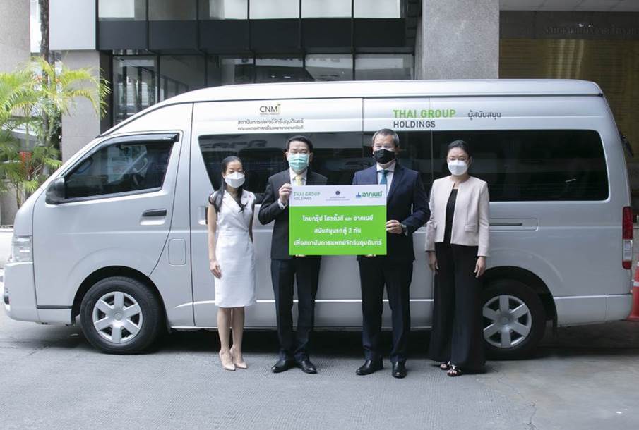 29 กรกฎาคม 2564 : โชติพัฒน์ พีชานนท์ ประธานกรรมการบริหาร ไทยกรุ๊ป โฮลดิ้งส์ และ อาคเนย์ กลุ่มธุรกิจประกันและการเงิน (กลางขวา) สนับสนุนรถตู้ จำนวน 2 คัน มูลค่า 1,440,000 บาท พร้อมความคุ้มครองประกันภัยรถยนต์ และ พ.ร.บ. รถยนต์ ให้แก่สถาบันการแพทย์จักรีนฤบดินทร์ โดยได้รับเกียรติจากศาสตราจารย์ นายแพทย์ ปิยะมิตร ศรีธรา ประธานมูลนิธิรามาธิบดีฯ (กลางซ้าย) และ พรรณสิรี คุณากรไพบูลย์ศิริ ผู้จัดการมูลนิธิรามาธิบดีฯ (ริมซ้าย) เป็นผู้รับมอบ เพื่อให้บุคลากรทางการแพทย์ใช้ในการเคลื่อนย้ายผู้ป่วยโควิด-19 โดยมี ภฤตยา สัจจศิลา กรรมการผู้จัดการ บริษัท อาคเนย์ประกันชีวิต จำกัด (มหาชน) (ริมขวา) ร่วมส่งมอบ ณ อาคารศูนย์การแพทย์สิริกิติ์ คณะแพทยศาสตร์โรงพยาบาลรามาธิบดี เมื่อเร็วๆ นี้ ![]()