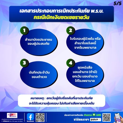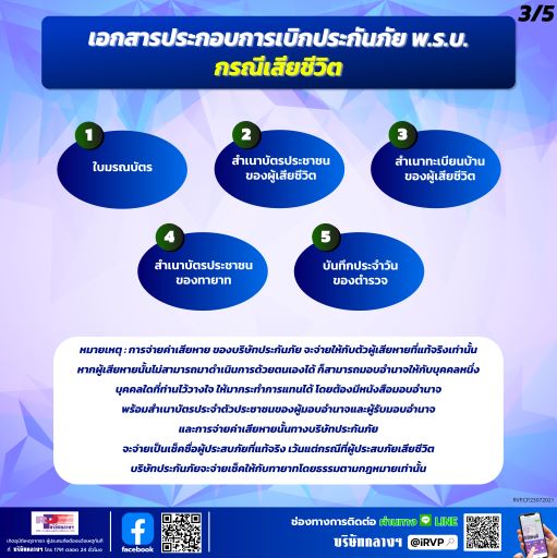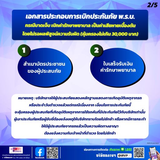 30 กรกฎาคม 2564 : เมื่อเกิดอุบัติเหตุจากรถและรถคันที่ก่อให้เกิดอุบัติเหตุมีประกันภัย พ.ร.บ. ทุกคนที่ได้รับบาดเจ็บหรือเสียชีวิตจะได้รับการคุ้มครอง…อกสารที่ใช้เบิกประกันภัย พ.ร.บ.มีดังนี้