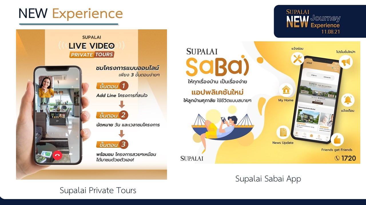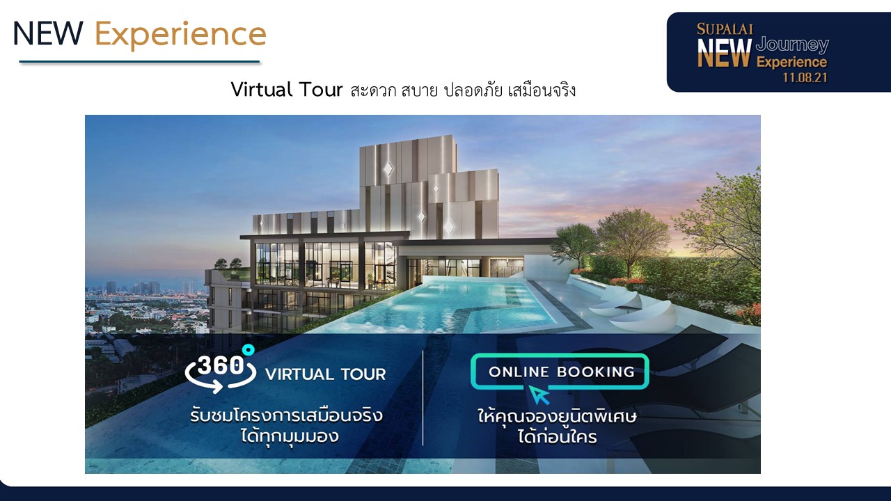 พร้อมทั้งเดินหน้าสร้างประสบการณ์ใหม่ๆ เพื่อให้ทันสถานการณ์ในปัจจุบัน โดยมีการออกแบบผลิตภัณฑ์ใหม่ และเพิ่มช่องทางการตลาดในรูปแบบ Virtual Tour รับชมโครงการเสมือนจริง และ Online Booking จองยูนิตที่สนใจ เพิ่มความสะดวก สบาย ปลอดภัย และรูปแบบ Supalai Private Tours เป็นการสื่อสารและชมโครงการได้ทุกที่ทุกเวลา เพื่อลดการสัมผัสให้เหมาะสมกับเหตุการณ์โควิด -19 รวมถึงกระบวนการก่อสร้าง โดยเน้น Waste Management เพื่อมีส่วนร่วมในการลดขยะให้สังคม
