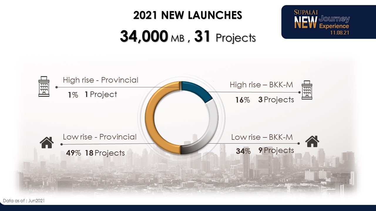 นอกจากนี้ ยังมีการช่วยเหลือลูกค้าโครงการที่ได้รับผลกระทบจากเหตุการณ์โรงงานระเบิด ซึ่งเรื่องราวต่างๆ ดังกล่าวถือเป็นสิ่งท้าทายของบริษัทฯ จึงมีการปรับแผนการบริหารจัดการให้เหมาะสมกับสถานการณ์ที่ผ่านมา แต่บริษัทฯ ยังคงเป้าหมายด้านยอดขายและรายได้ที่ตั้งไว้เมื่อต้นปี 2564 เช่นเดิม โดยในช่วงครึ่งปีแรกมีการเปิดตัวโครงการใหม่แล้ว ทั้งหมด 9 โครงการ ซึ่งเป็นโครงการแนวราบในพื้นที่กรุงเทพฯ และภูมิภาค รวมเป็นมูลค่า 9,180 ล้านบาท