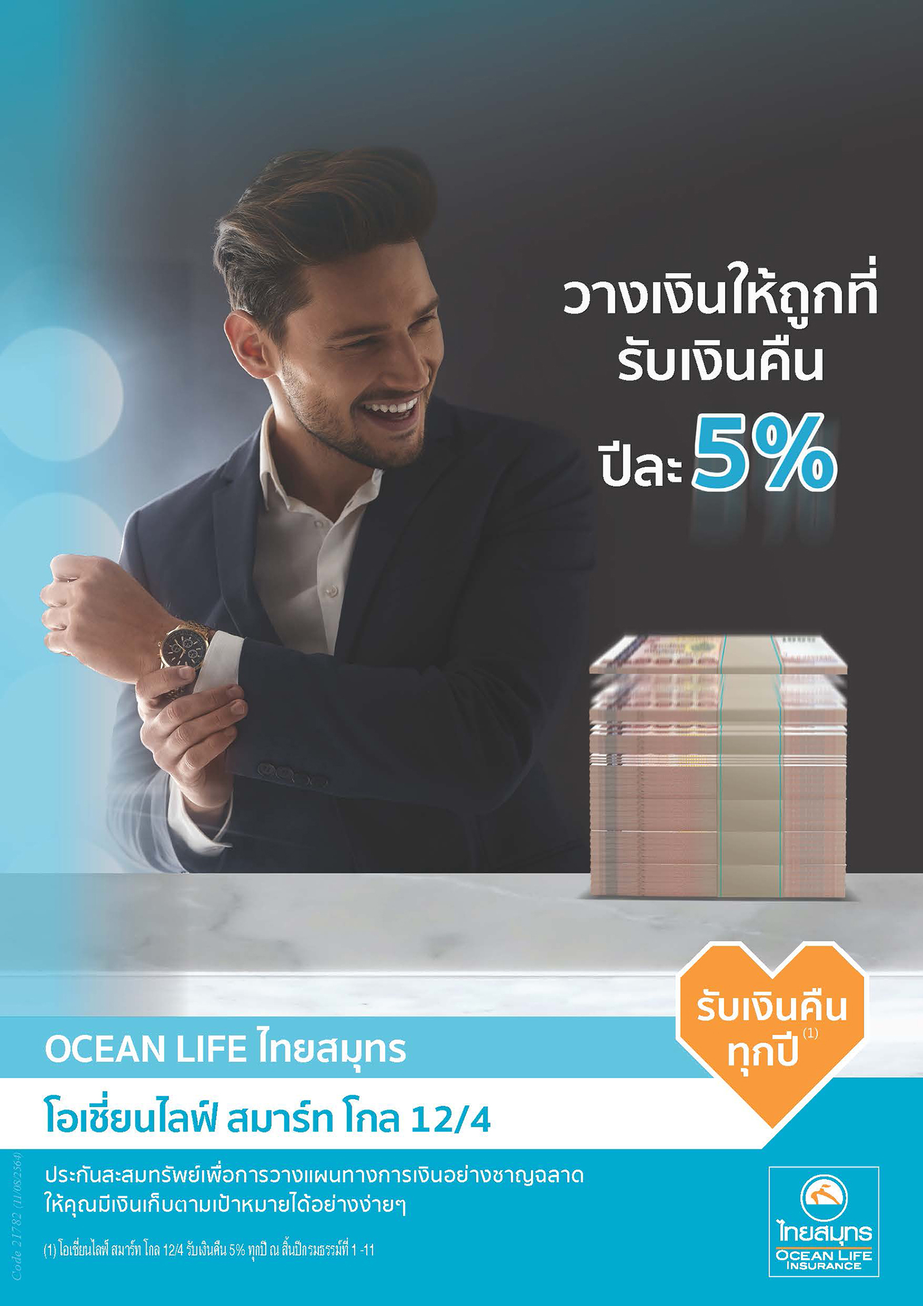 13 สิงหาคม 2564 : บมจ.ไทยสมุทรประกันชีวิต รักคือพลังของชีวิต โดยคุณนุสรา (อัสสกุล) บัญญัติปิยพจน์ ประธานเจ้าหน้าที่บริหาร และกรรมการผู้จัดการ เผยว่า จากสถานการณ์วิกฤตที่เข้ามาอย่างรวดเร็วทำหลายคนตั้งรับไม่ทัน ดังนั้น เราจึงส่งตัวช่วยในการวางแผนเป้าหมายทางการเงินระยะกลาง ที่จะช่วยแบ่งเบาภาระให้คุณและคนที่รักได้ ด้วยแบบประกันใหม่ล่าสุด! “โอเชี่ยนไลฟ์ สมาร์ท โกล 12/4” ประกันสะสมทรัพย์จาก OCEAN LIFE ไทยสมุทร ประกันที่ตอบโจทย์ทุกความต้องการ เพื่อการวางแผนทางการเงินอย่างชาญฉลาด