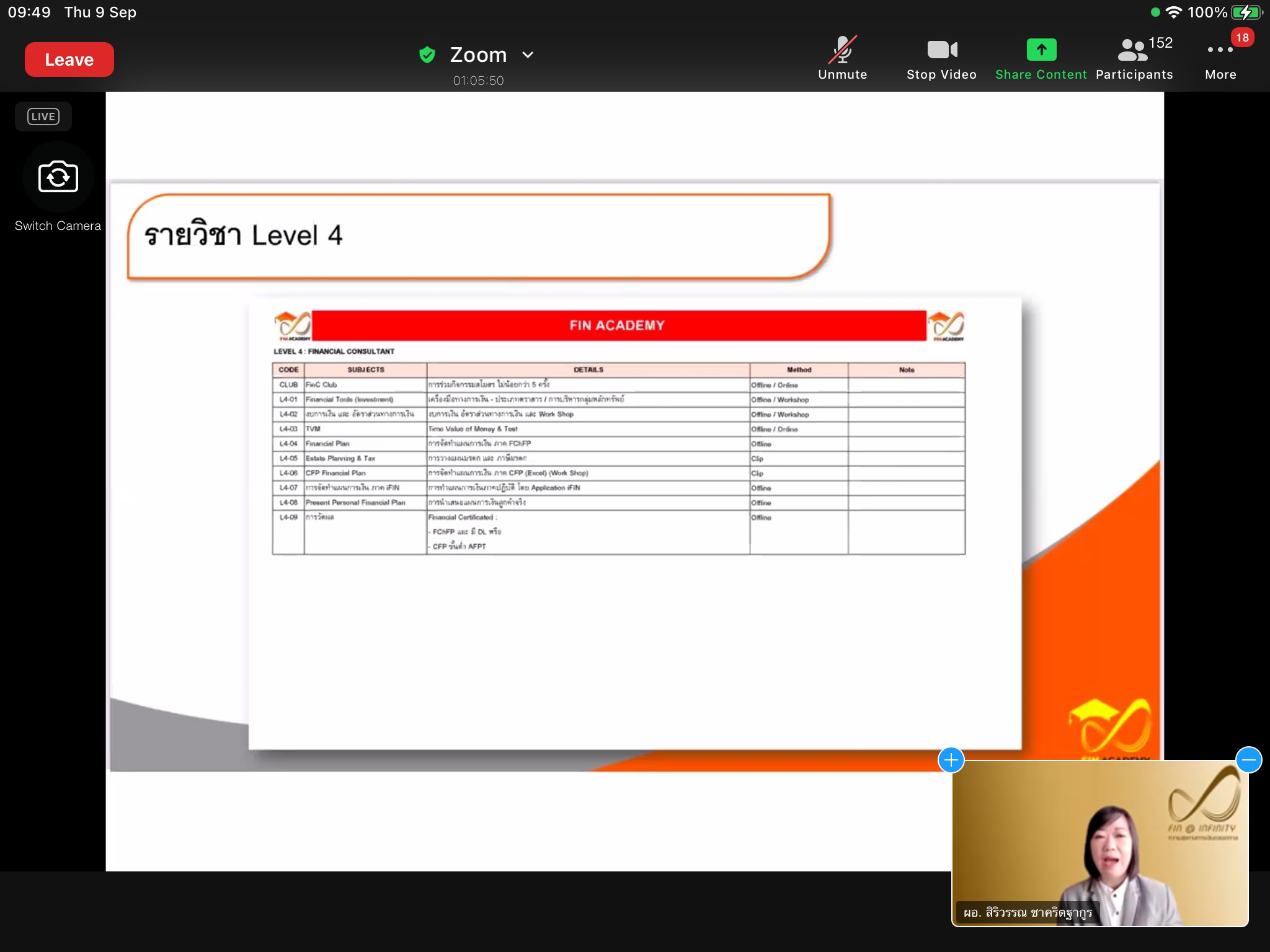 FIN Academy Level 4 ซึ่งเป็นระดับสูงสุดของหลักสูตร ผู้เรียนจะต้องสามารถทำแผนการเงิน ให้กับผู้รับคำปรึกษาได้ มีนายชวลิต ลีลาภรณ์ ที่ปรึกษาการเงิน CFP ผู้เป็นวิทยากรประจำของหลักสูตร FChFP และ AChFP เป็นผู้ดูแล