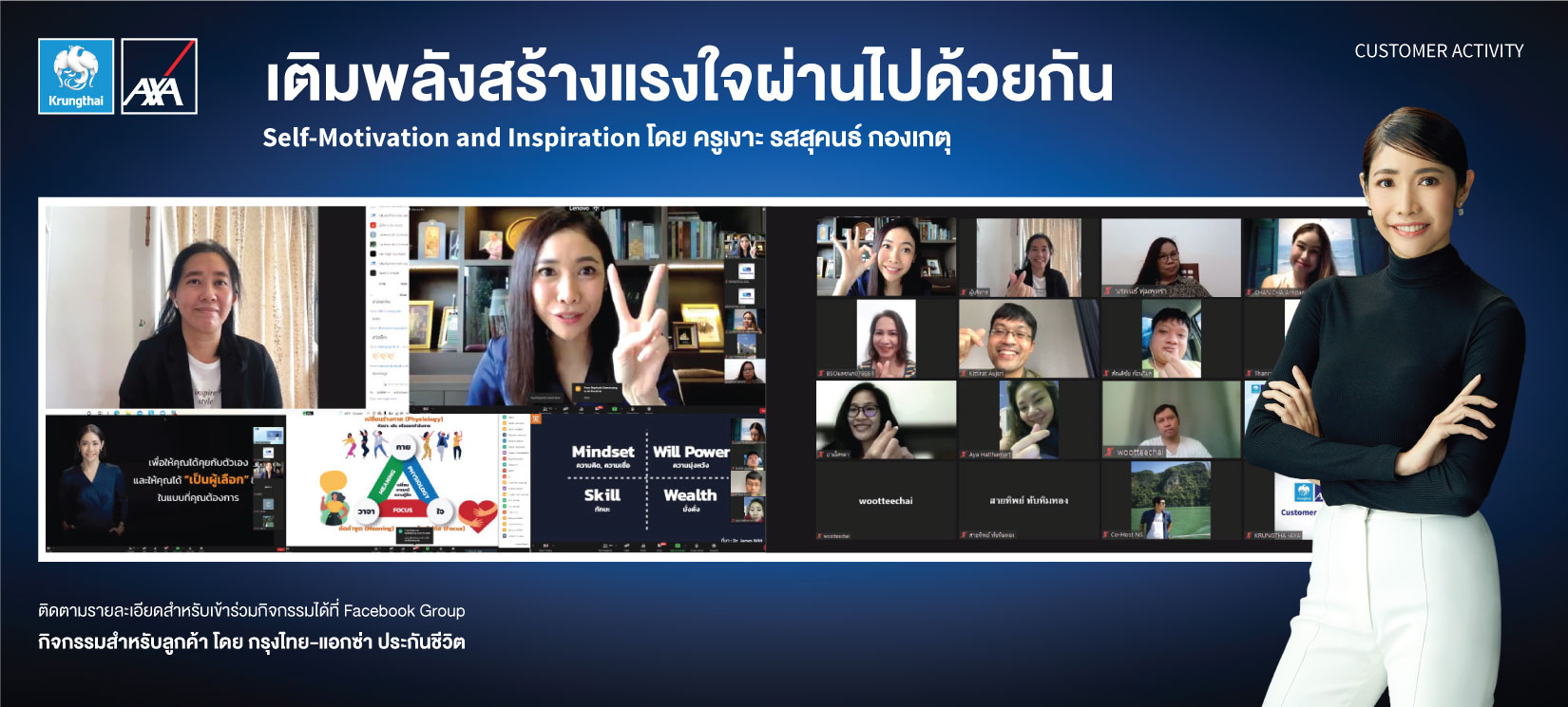 โดยกิจกรรมดังกล่าวมีลูกค้าลงทะเบียนร่วมกิจกรรมออนไลน์มากกว่า 300 ท่าน ซึ่งกิจกรรมได้สร้างความสุข ความสนุกสนาน พร้อมให้ความรู้วิธีการสร้างแรงบันดาลใจและได้รับความสนใจเป็นอย่างมาก ซึ่งเป็นไปตามนโยบายของบริษัทฯ ที่จะอยู่เคียงข้าง ทุกความเชื่อมั่น ดูแลกันตลอดไป ![]()