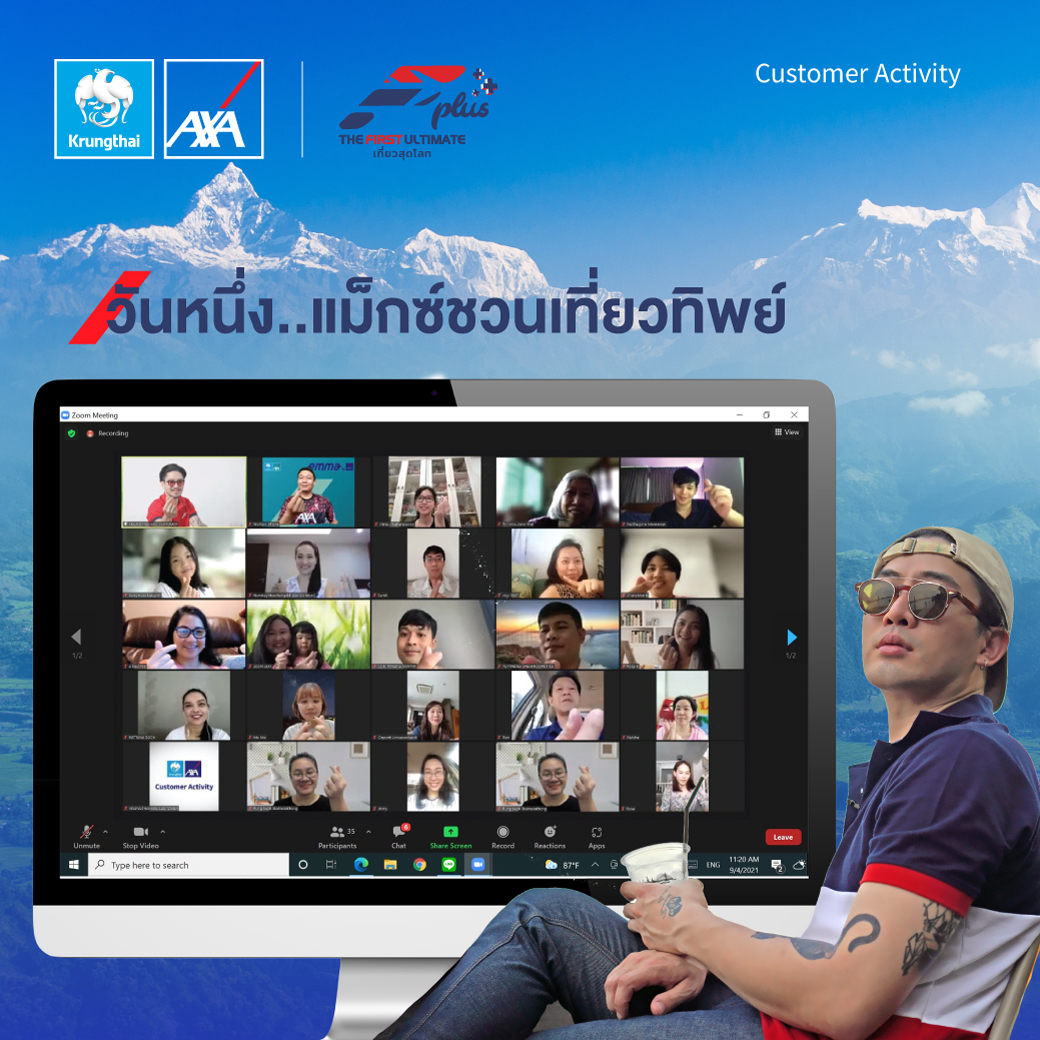 23 กันยายน 2564 : บมจ.กรุงไทย-แอกซ่า ประกันชีวิต ร่วมกับ The First Ultimate เที่ยวสุดโลก จัดกิจกรรมออนไลน์สุดพิเศษ “วันหนึ่ง…แม็กซ์ชวนเที่ยวทิพย์” กับ คุณแม็กซ์ ณัฐวุฒิ เจนมานะ นักร้องชื่อดัง โดยในงานได้รับเกียรติจาก คุณนิสิต สีหะวงษ์ Head of Customer Relations & Event Management กล่าวต้อนรับ ลูกค้าคนพิเศษ พร้อมร่วมสนุกเปิดกล่องปริศนา หรือ Mystery Box