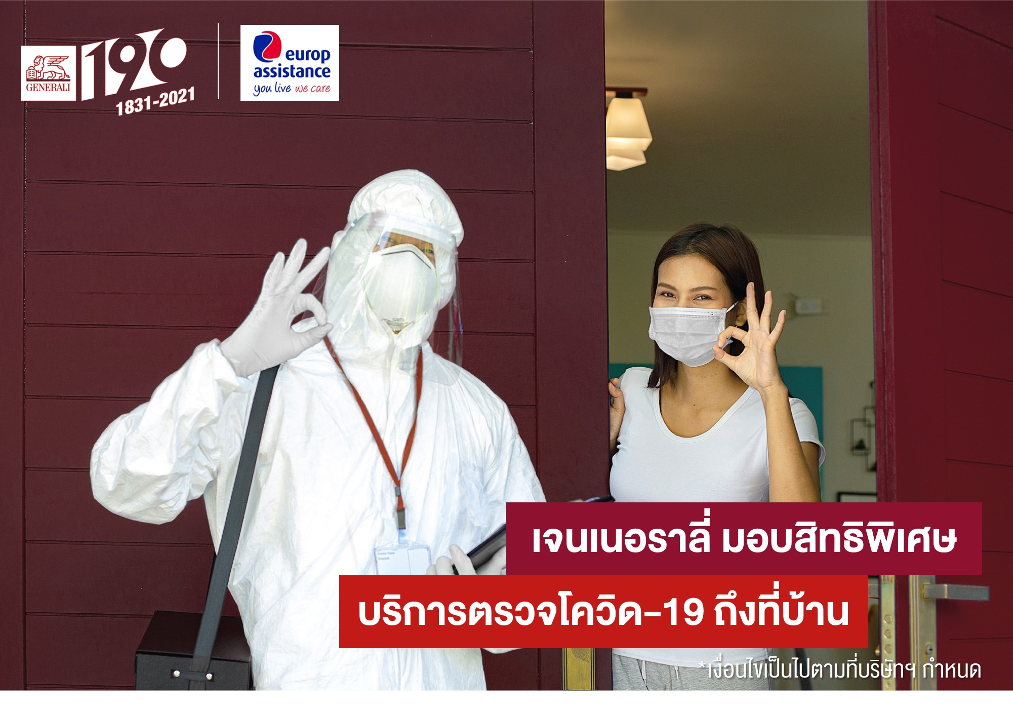 ล่าสุด เจนเนอราลี่ ประเทศไทย จึงได้ร่วมมือกับยุโรป แอสซิสแทนซ์ (ประเทศไทย) บริษัทชั้นนำระดับโลกด้านบริการช่วยเหลือและดูแลด้านการแพทย์ เปิดตัวสิทธิประโยชน์พิเศษ บริการ “ตรวจหาเชื้อโควิด-19 ที่บ้าน” เพื่อเพิ่มช่องทางและอำนวยความสะดวกในการตรวจหาเชื้อโควิด-19 ที่บ้าน ให้แก่ลูกค้าผู้ถือกรมธรรม์ของเจนเนอราลี่ โดยลูกค้าสามารถใช้คะแนนในแอปพลิเคชัน Generali 365 แลกรับสิทธิพิเศษได้ฟรี หรือใช้คะแนนแลกรับส่วนลดค่าบริการ ในราคาพิเศษ