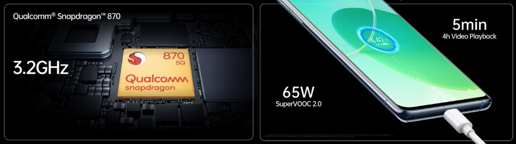 CPU Qualcomm Snapdragon 870 และ ชาร์จไว 65W SuperVOOC 2.0