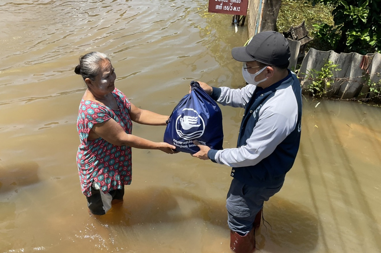 นอกจากนี้ นายอลงกรณ์ กาศทิพย์ ผู้จัดการภาคเหนือ ร่วมกับนายวรพงษ์ สมเกียรติ ผู้จัดการฝ่ายสินเชื่อ ธนาคารกรุงเทพ สำนักธุรกิจสุโขทัย และนางสาวใกล้รุ่ง อิ่มสาย ผู้จัดการธนาคารกรุงเทพ สาขาสุโขทัย ยังได้ร่วมมอบถุงยังชีพให้แก่ผู้ประสบอุทกภัยในพื้นที่จังหวัดสุโขทัย อีกจำนวน 500 ชุด เพื่อเร่งบรรเทาความเดือดร้อนแก่ประชาชนในพื้นที่ดังกล่าวท่ามกลางสถานการณ์ที่ยังอยู่ในช่วงแพร่ระบาดของเชื้อไวรัสโควิด-19 เมื่อวันที่ 1-2 ตุลาคม 2564
