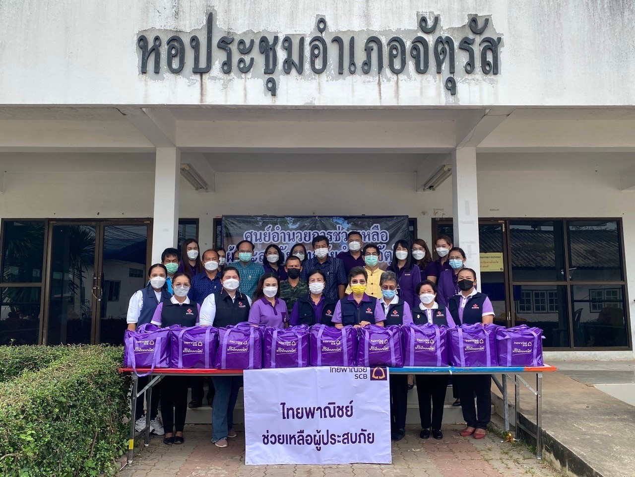 นางสาวอารยา ภู่พานิช รองผู้จัดการใหญ่ ผู้บริหารสายงานกิจกรรมเพื่อสังคม ธนาคารไทยพาณิชย์ กล่าวว่า “จากเหตุการณ์อุทกภัยที่เกิดขึ้นในหลายพื้นที่ในขณะนี้ ธนาคารไทยพาณิชย์มีความห่วงใยและตระหนักดีถึงความเดือดร้อนของประชาชน จึงมุ่งมั่นที่จะเป็นส่วนหนึ่งในการดูแลสังคมและบรรเทาทุกข์ให้กับ ผู้ประสบอุทกภัยในครั้งนี้อย่างทันต่อเหตุการณ์ ภายใต้โครงการ “ช่วยผู้ประสบภัยกับไทยพาณิชย์” ธนาคารฯ ได้ร่วมกับหน่วยงานภาคีเครือข่ายที่เข้มแข็งส่งมอบถุงยังชีพ “น้ำใจไทยพาณิชย์” จำนวน 3,800 ถุง บรรจุสิ่งของจำเป็นในชีวิตประจำวัน ได้แก่