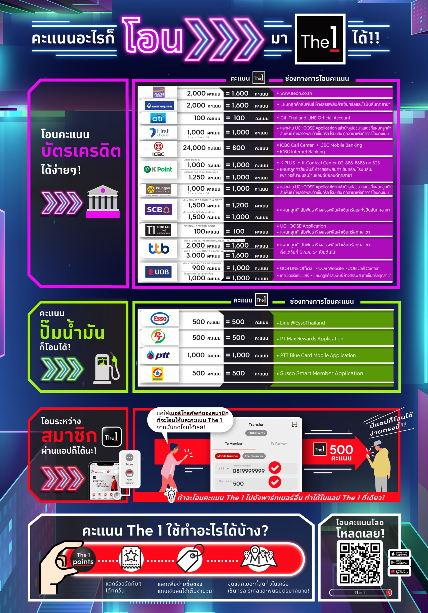 การโอนคะแนนบัตรเครดิตมาเป็นคะแนน The 1 นั้นเป็นหนึ่งในบริการที่ได้รับความนิยมสูงอย่างต่อเนื่องและได้รับการจัดให้อยู่ในอันดับต้นๆ ในแง่ความคุ้มค่าของการโอนคะแนนจากบัตรเครดิตมา โดยเฉพาะในช่วงโควิดที่ผ่านมาที่ผู้ถือคะแนนบัตรเครดิตไม่สามารถแลกคะแนนเพื่อการเดินทางกับสายการบินได้อย่างสะดวกเช่นแต่ก่อน อาทิ กระแสความนิยมเมื่อช่วงต้นปี 2564 ที่ผ่านมา ที่ผู้ใช้บัตรเครดิตธนาคารซิตี้แบงก์ให้ความสนใจโอนคะแนน Citi Rewards มาเป็นคะแนน The 1 อย่างล้นหลาม ส่งผลให้มียอดโอนเพิ่มขึ้นกว่า 2 เท่าตัวในช่วงหลายเดือนที่ผ่านมา และในปี 2563 ที่ผ่านมา มียอดโอนคะแนนรวมจากบัตรเครดิตมาที่ The 1 เติบโตกว่าร้อยละ 80