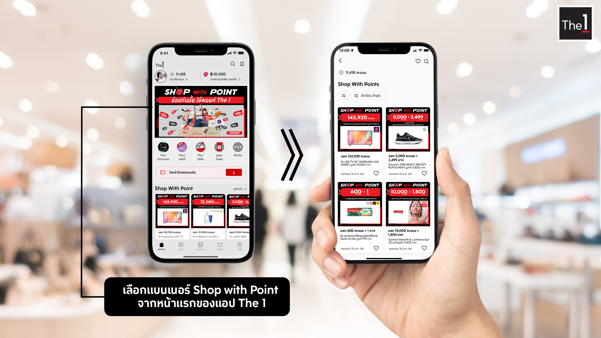 เราจึงจัด ‘Shop with Point - ช้อปกันมั้ย ใช้พ้อยต์ The 1’ เทศกาลแลกคะแนน The 1 คุ้มค่าที่สุดแห่งปีขึ้น โดยส่งเสริมให้สมาชิกนำคะแนน The 1 มาใช้แลกเป็นสินค้าที่คัดสรรมาแล้วแทนการใช้เงิน โดย The 1 ได้รับความร่วมมือจากกลุ่มธุรกิจในเครือเซ็นทรัลและพาร์ทเนอร์ที่ต่างยินดีมอบข้อเสนอที่ดีที่สุดให้กับสมาชิก The 1 ของเรา สามารถแลกคะแนน The 1 ได้ทุกที่ทุกเวลาด้วยตัวเองบนแอป The 1 และนำไปรับสินค้าในจุดที่ระบุได้ทันทีอย่างง่ายดายไร้รอยต่อ”