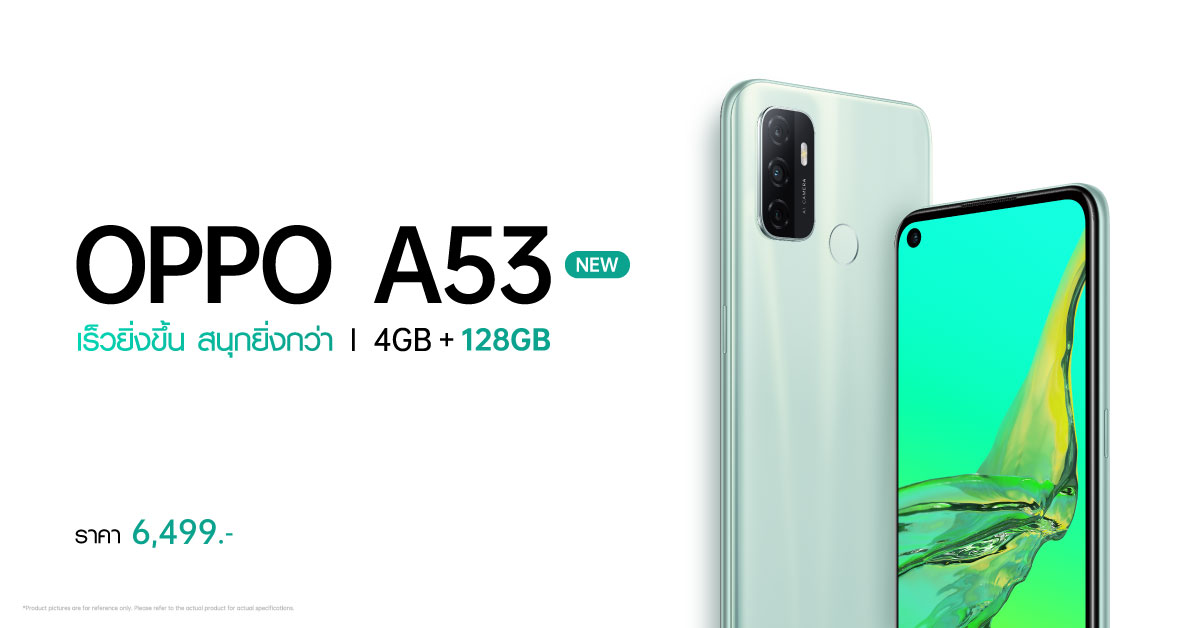 20 ตุลาคม 2564 : OPPO แบรนด์สมาร์ทโฟนชั้นนำในไทย ประกาศเปิดตัว OPPO A53 NEW รุ่น RAM 4GB, ROM 128GB ที่โดดเด่นด้วยพื้นที่จัดเก็บที่มากขึ้น พร้อมหน้าจอกว้างเต็มตาที่มี 90Hz refresh rate ให้คุณสนุกได้อย่างไหลลื่นไม่มีสะดุด และแบตเตอรี่ใหญ่จุใจ โดยจะวางจำหน่ายอย่างเป็นทางการตั้งแต่วันที่ 22 ตุลาคม 2564 ในราคา 6,499 บาท ที่ OPPO Brand Shop ทุกสาขา และตัวแทนจำหน่ายทั่วประเทศ