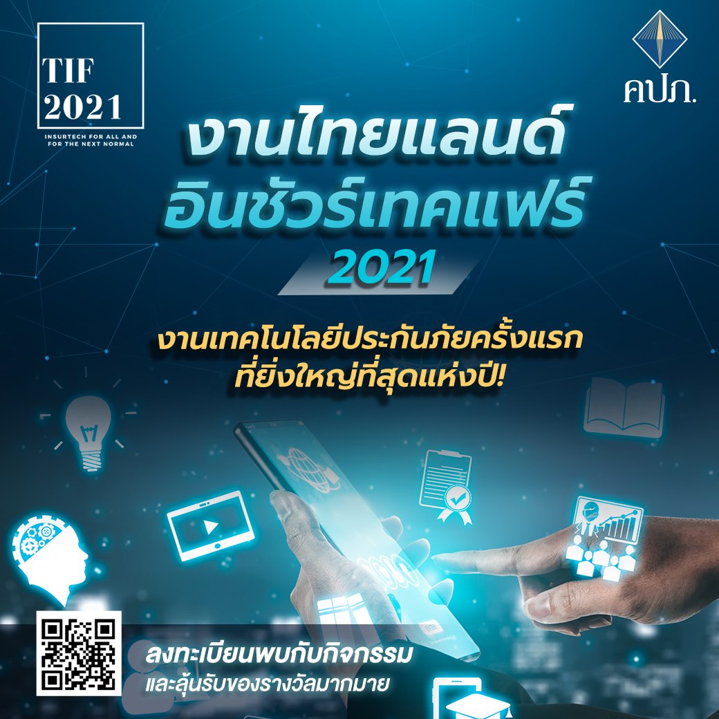22 ตุลาคม 2564 : เปิดประสบการณ์จัดงานรูปแบบ Virtual ครั้งแรกในประเทศไทย ตอบโจทย์ชีวิตวิถีใหม่ที่ต้องเว้นระยะห่าง กับสุดยอดงานประจำปี “Thailand InsurTech Fair 2021 สุดยอดงานมหกรรมด้านประกันภัย” ที่จะมีขึ้นระหว่างวันที่ 26-30 ตุลาคม 2564 โดยงานนี้ สำนักงาน คปภ. ร่วมมือกับภาคธุรกิจประกันภัย รวบรวมผลิตภัณฑ์ประกันภัยจากทุกบริษัทชั้นนำทั่วไทย และผู้เชี่ยวชาญเทคโนโลยีด้านการประกันภัย หรือ อินชัวร์เทค (Insure Tech) จากทั่วทุกมุมโลกให้ทุกคนได้เรียนรู้