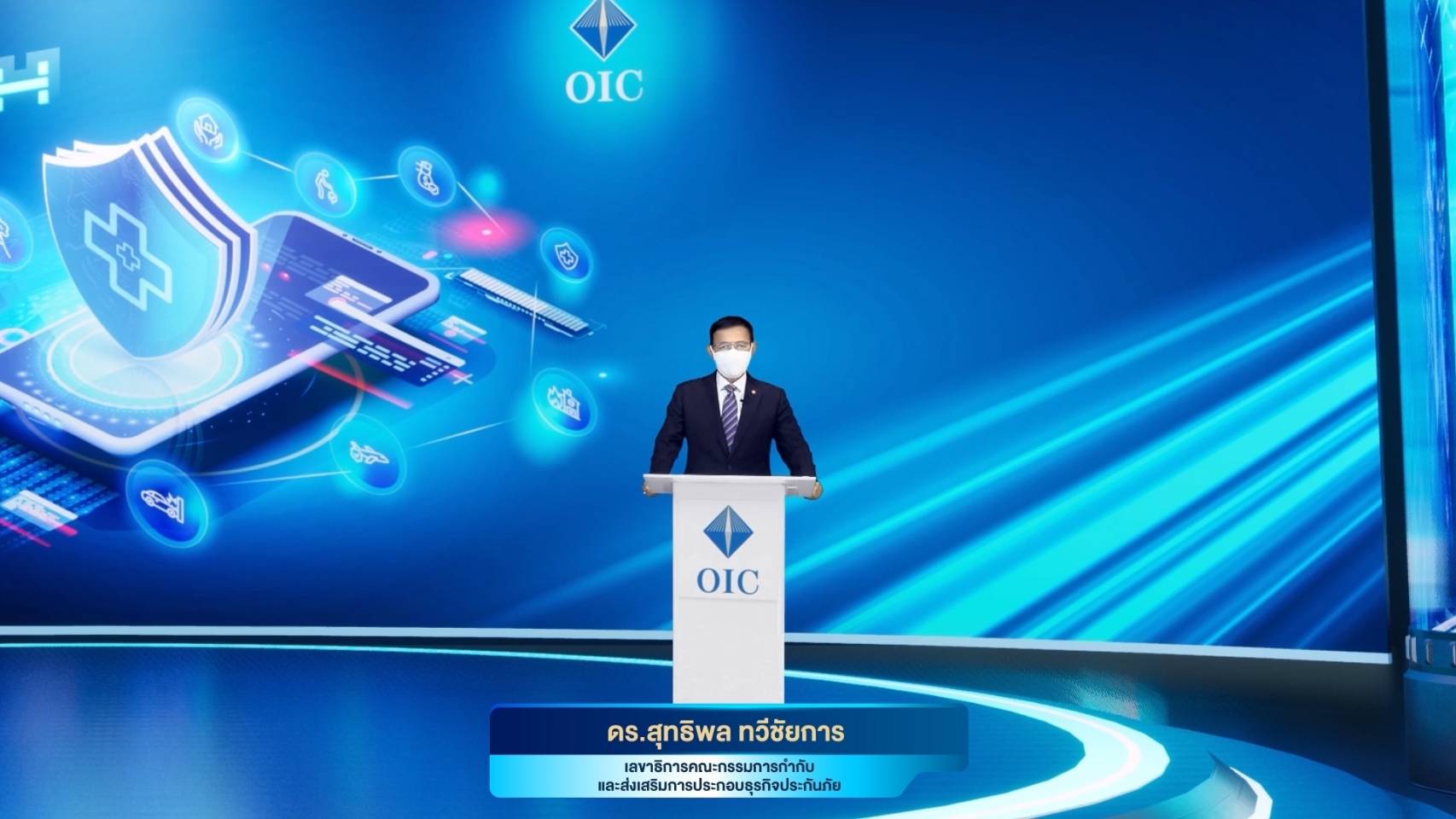 นอกจากนี้ ดร.สุทธิพล ทวีชัยการ เลขาธิการ คปภ. บรรยายพิเศษหัวข้อ Future Regulations Landscape: Creating your New Opportunities ถึงแนวทางในการปรับตัวของภาคธุรกิจประกันภัยภายหลังสถานการณ์การแพร่ระบาดของโควิด-19 ถึงแนวโน้มรูปแบบธุรกิจ (Business Model Transformation) ที่เปลี่ยนแปลง คือ