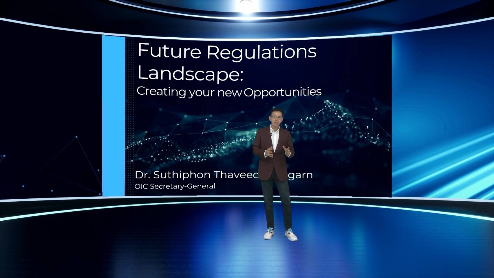 ในโอกาสนี้ รัฐมนตรีฯ ได้กล่าวปาฐกถาตอนหนึ่งเกี่ยวกับการเตรียมพร้อมเพื่อรองรับการฟื้นตัวของเศรษฐกิจเป็นสิ่งที่มีความสำคัญไม่น้อยไปกว่าการรับมือกับสถานการณ์ปัจจุบัน ความท้าทายที่จะยังคงอยู่ภายหลังจากที่สถานการณ์การแพร่ระบาด ของโควิด-19 คคลี่คลาย ซึ่งสิ่งหนึ่งที่เป็นปรากฏการณ์ใหม่ภายหลังยุคโควิด คือ ผู้คนและภาคธุรกิจมีการพึ่งพาเทคโนโลยีเพิ่มขึ้นเป็นอย่างมาก การทำธุรกรรมออนไลน์ หรือการทำงานจากที่บ้าน กลายเป็นสิ่งธรรมดาในชีวิตประจำวัน