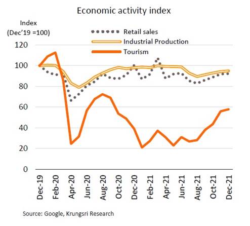 ทั้งนี้ วิจัยกรุงศรีคาดว่ากิจกรรมท่องเที่ยวทั้งในและต่างประเทศในสิ้นปีนี้จะยังอยู่ต่ำกว่าระดับช่วงก่อนเกิดวิกฤต COVID-19 อยู่ที่ 58% ซึ่งต่ำมากเมื่อเทียบกับกิจกรรมทางด้านผลผลิตภาคอุตสาหกรรมและการค้าปลีกที่สิ้นปีนี้จะกลับมาอยู่ที่ 95% และ 92% ของระดับก่อนเกิดวิกฤต COVID-19 ตามลำดับ มาตรการเพิ่มกำลังซื้อของภาครัฐจึงเป็นปัจจัยบวกที่จะช่วยหนุนการฟื้นตัวของเศรษฐกิจที่ยังมีความเปราะบาง และเมื่อรวมกับมาตรการที่ออกมาก่อนหน้าทั้งมาตรการกระตุ้นการท่องเที่ยวในประเทศ วงเงินกว่า 1 หมื่นล้านบาท กับมาตรการรักษาระดับการจ้างงานให้แก่ธุรกิจ SMEs วงเงิน 3.75 หมื่นล้านบาทแล้ว โดยรวมแล้วในไตรมาสสุดท้ายของปีนี้จึงมีเม็ดเงินจากมาตรการภาครัฐหมุนเวียนเข้าสู่ระบบเศรษฐกิจไม่ต่ำกว่า 1 แสนล้านบาท