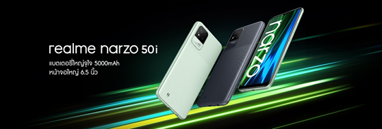 อีกหนึ่งรุ่นทางเลือกสำหรับผู้ต้องการสมาร์ตโฟนรุ่นเริ่มต้นราคาสุดคุ้ม แต่อัดแน่นด้วยคุณภาพ กับ “realme narzo 50i” สมาร์ตโฟนรุ่นเล็กแต่ให้จอใหญ่สะใจถึง 6.5 นิ้ว แถมแบตเตอรี่ความจุมากถึง 5,000mAh รองรับการใช้งานทั่วไปได้ดีเยี่ยม โดยเฉพาะสายเสพคอนเทนต์ที่เน้นดูหนังฟังเพลงต่อเนื่องยาวนานตลอดวัน