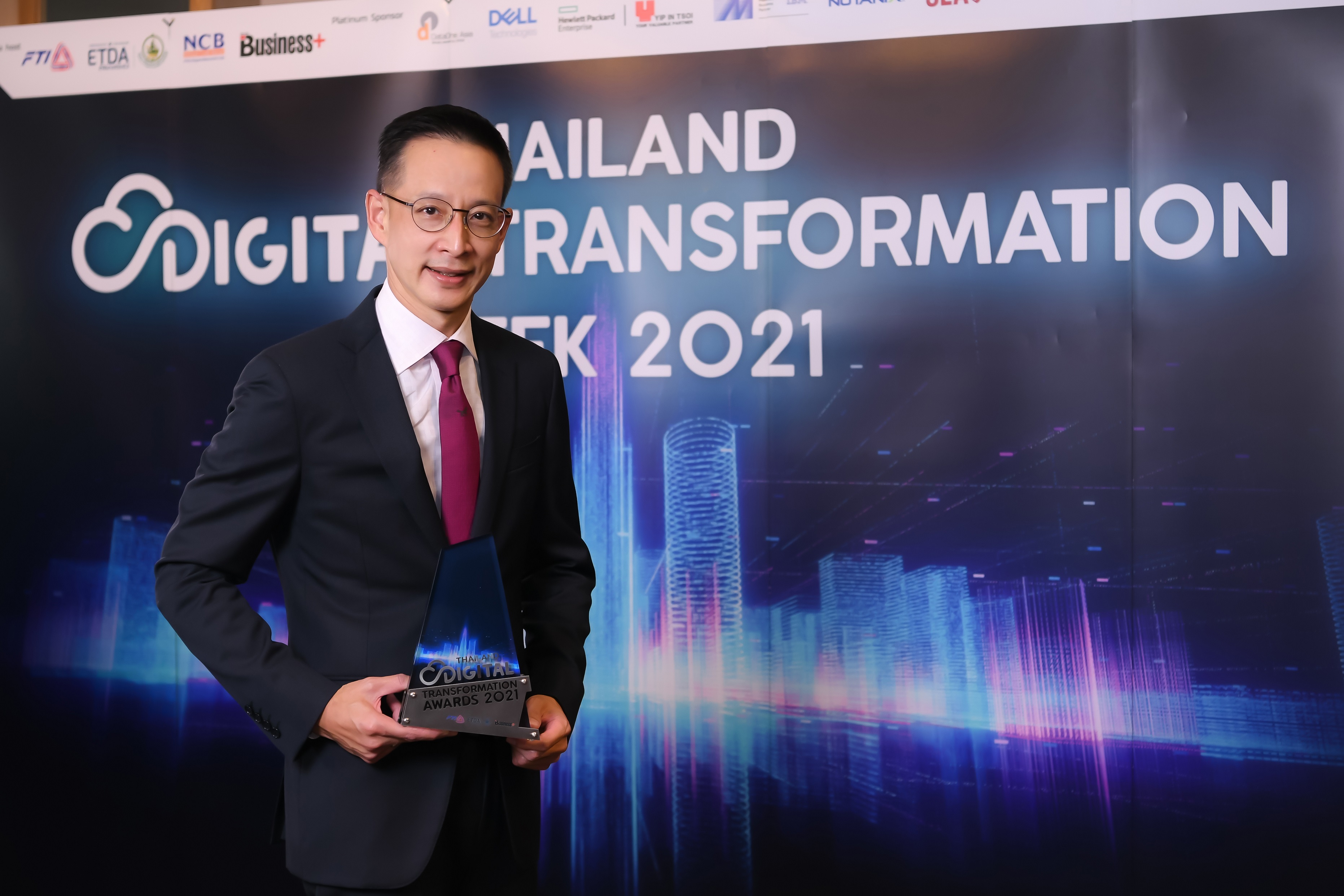 จัดโดยสภาอุตสาหกรรมแห่งประเทศไทย (สอท.) สำนักงานพัฒนาธุรกรรมทางอิเล็กทรอนิกส์ (สพธอ.) และนิตยสาร Business+ ในเครือบริษัท เออาร์ไอพี จำกัด (มหาชน) ในงาน “THAILAND DIGITAL TRANSFORMATION WEEK 2021” เพื่อยกย่ององค์กรทั้งภาครัฐและเอกชน ที่นำเทคโนโลยีดิจิทัลมาใช้ในองค์กรและดำเนินธุรกิจได้อย่างสำเร็จ โดยใช้เทคโนโลยีดิจิทัลเพื่อขับเคลื่อนองค์กรเชิงกลยุทธ์และเพิ่มประสิทธิภาพและประสิทธิผลของธุรกิจภายในองค์กร และนำไปใช้กับองค์กรภายนอก ซึ่งจะช่วยขับเคลื่อนภาคธุรกิจให้สามารถก้าวข้ามผ่าน Digital Disruption ณ โรงแรมสวิสโซเทล ![]()