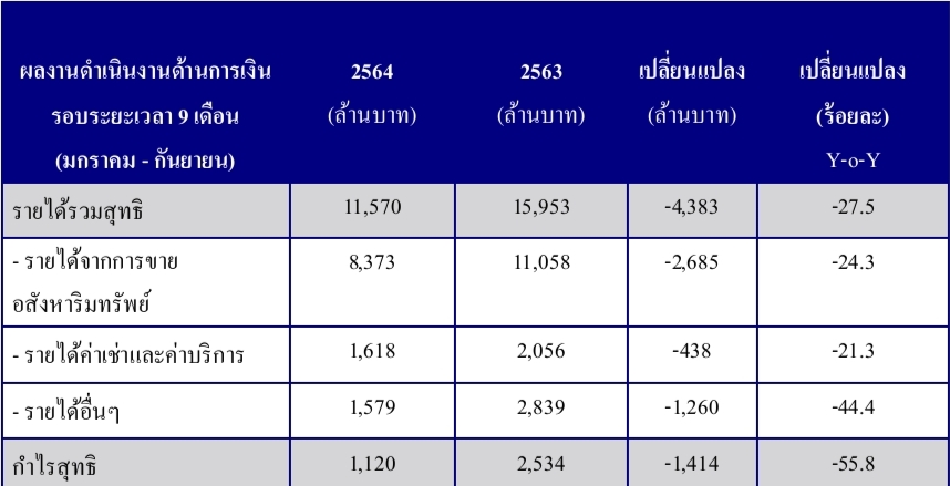 ผลงานดำเนินงานด้านการเงิน รอบระยะเวลา 9 เดือน (มกราคม – กันยายน)
