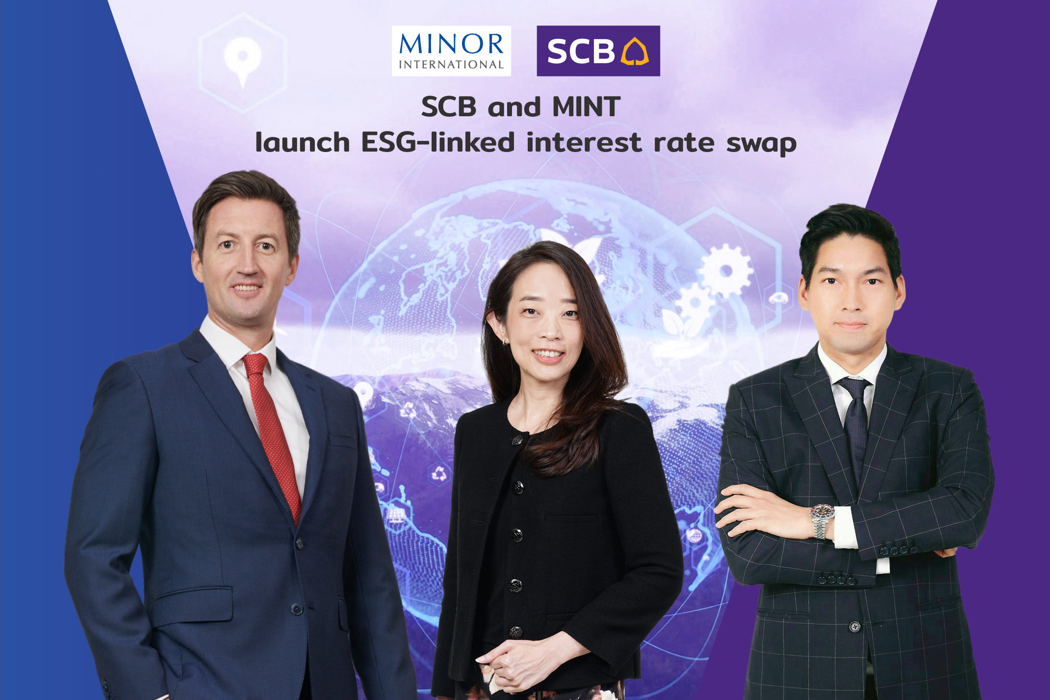 โดยมี ศรมน อิงคตานุวัฒน์ รองผู้จัดการใหญ่ ผู้บริหารสายงาน Corporate Banking 1, แพททริก ปูเลีย ผู้ช่วยผู้จัดการใหญ่ ผู้บริหารสายงานตลาดการเงิน ธนาคารไทยพาณิชย์ และ ไบรอัน เจมส์ เดลานี่ ประธานเจ้าหน้าที่การเงิน บริษัท ไมเนอร์ อินเตอร์เนชั่นแนล จำกัด (มหาชน) ร่วมเปิดตัว ESG-Linked Interest Rate Swap ![]()