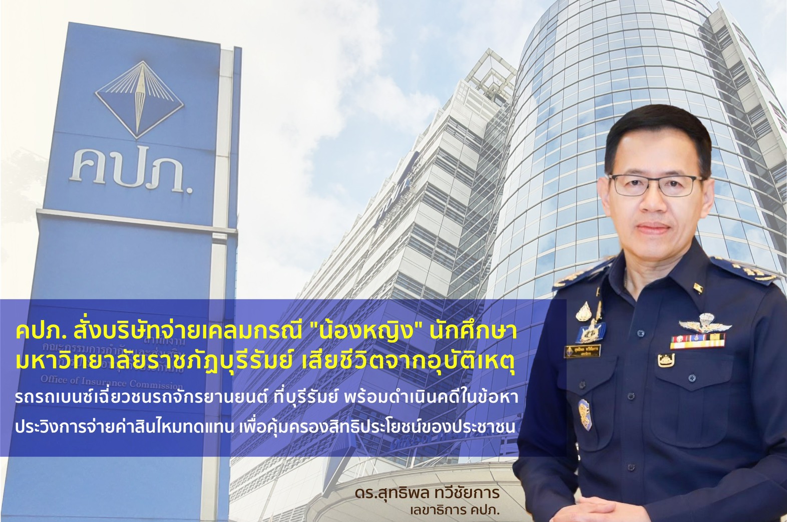 22 พฤศจิกายน 2564 : ดร. สุทธิพล ทวีชัยการ เลขาธิการคณะกรรมการกำกับและส่งเสริมการประกอบธุรกิจประกันภัย (เลขาธิการ คปภ.) เปิดเผยว่า จากกรณีเมื่อวันที่ 17 พฤศจิกายน 2564 พ่อแม่ของน้องหญิงผู้เสียชีวิตขับขี่รถจักรยานยนต์เกิดอุบัติเหตุเฉี่ยวชน กับรถเบนซ์ของคู่กรณี ได้ร้องเรียนต่อผู้สื่อข่าว ว่าไม่ได้รับความเป็นธรรมจากบริษัทประกันภัยผู้รับประกันภัยรถเบนซ์ของคู่กรณี ทั้งที่มีคำพิพากษาในคดีอาญาถึงที่สุดแล้ว เมื่อวันที่ 31 สิงหาคม 2564