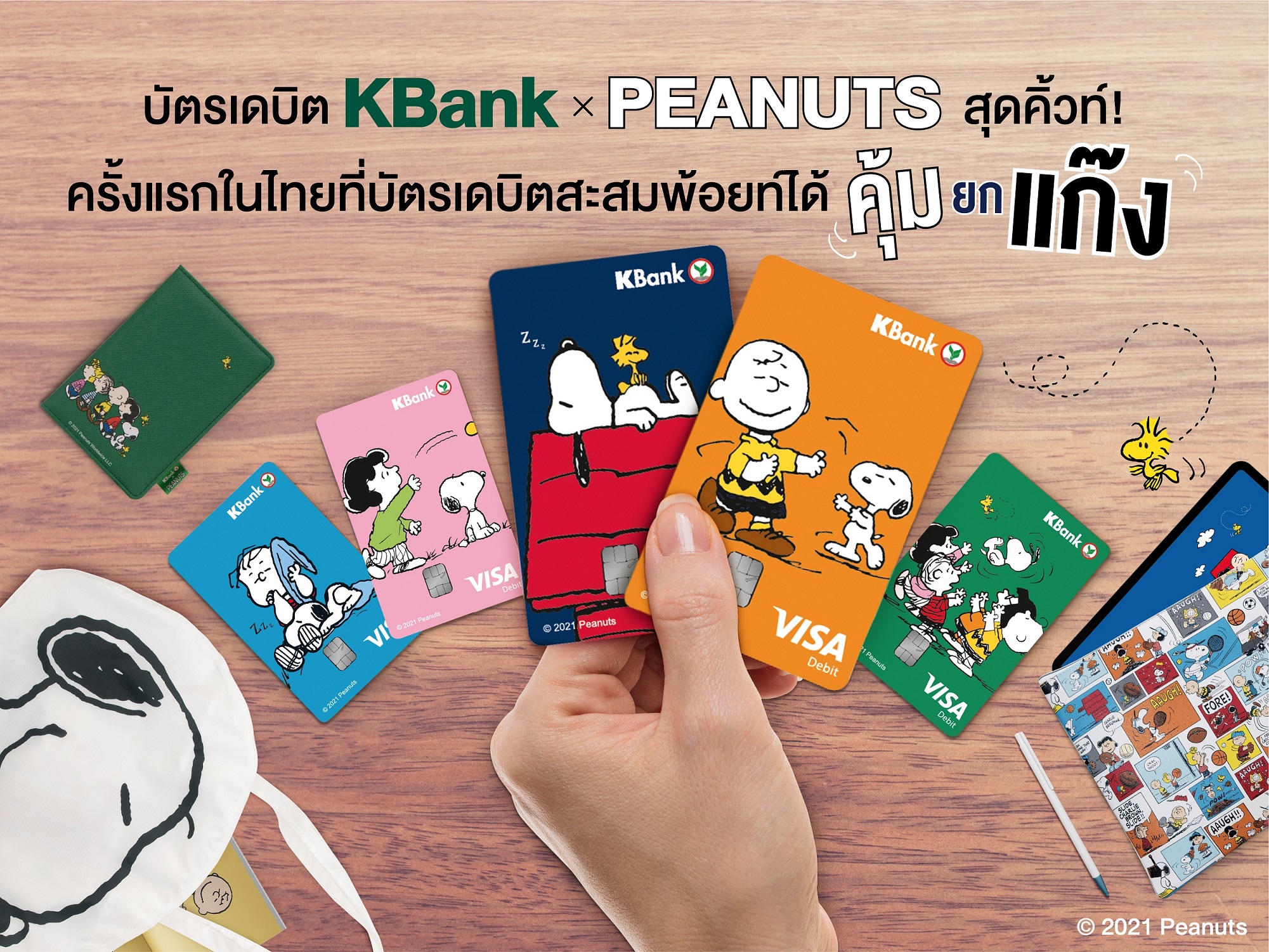 25 พฤศจิกายน 2564 : กสิกรไทยออกคอลเลกชันสุดคิ้วท์ KBank x PEANUTS เอาใจสาวกสนูปปี้แอนด์เดอะแก๊ง ส่ง 3 บริการทางการเงินชวนแฟนคลับตามเก็บให้ครบ พร้อมเปิดตัวบัตรเดบิตใบแรกในไทยที่สะสมพ้อยท์ได้ และออมเงินกับแก๊ง PEANUTS วันนี้ รับดอกเบี้ยสูงสุด 1.50% ต่อปี บริการทางการเงินที่จะชวนคุณเข้าร่วมแก๊ง มีดังนี้