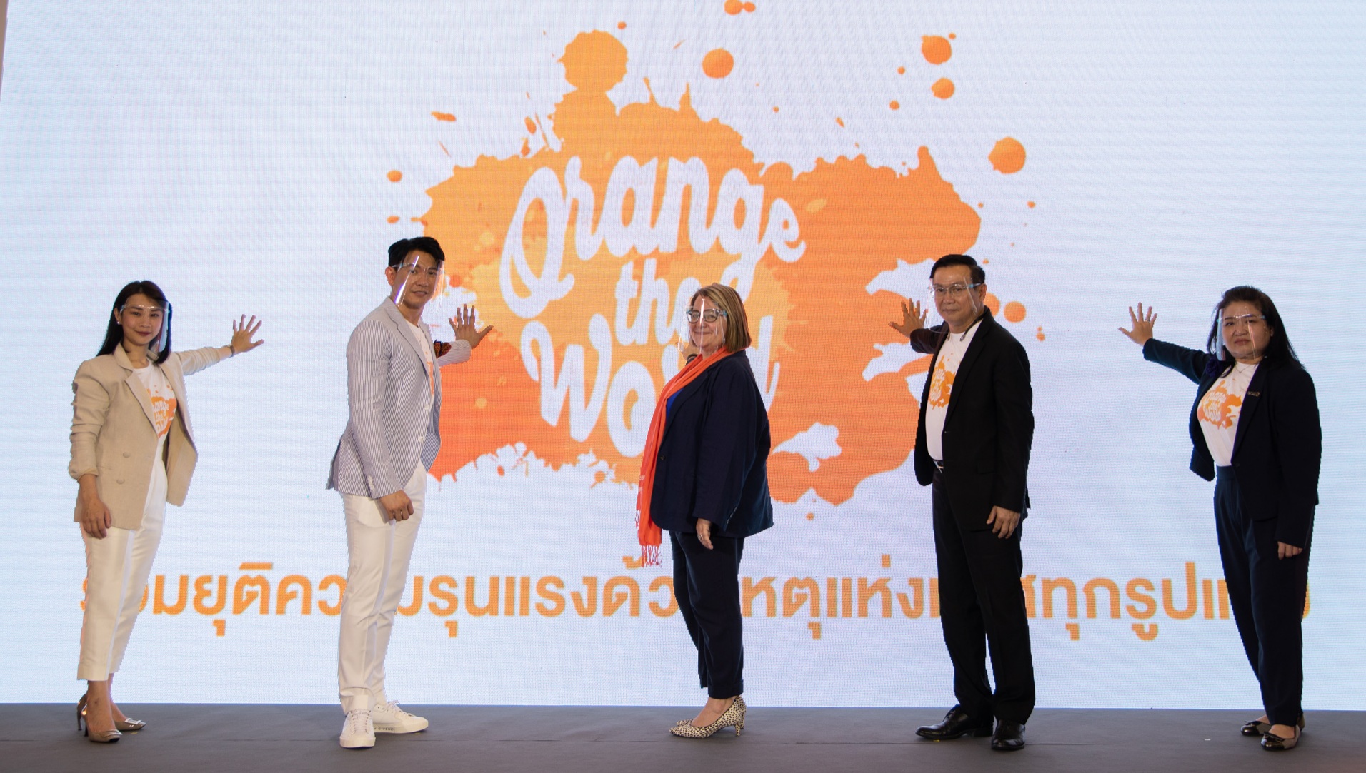 ร่วมผนึกกำลังเพื่อส่งเสริมความเสมอภาคระหว่างเพศ รณรงค์ต่อต้านและยุติความรุนแรงในทุกรูปแบบต่อผู้หญิง และกลุ่มผู้มีความหลากหลายทางเพศ (LGBTQIA+) ร่วมจัดงาน “ORANGE THE DAY” เพื่อประกาศจุดยืนร่วมกันอย่างเป็นทางการ พร้อมด้วยซูเปอร์สตาร์ของไทย คริสติน่า อากีล่าร์, ลูกเกด เมทินี, ทาทา ยัง, แจ๊สซี่ ชูว์เทอร์ และ รัศมีแข (VTR) ร่วมพูดคุยถึงมุมมองของความรุนแรงที่เกิดขึ้นกับผู้หญิง