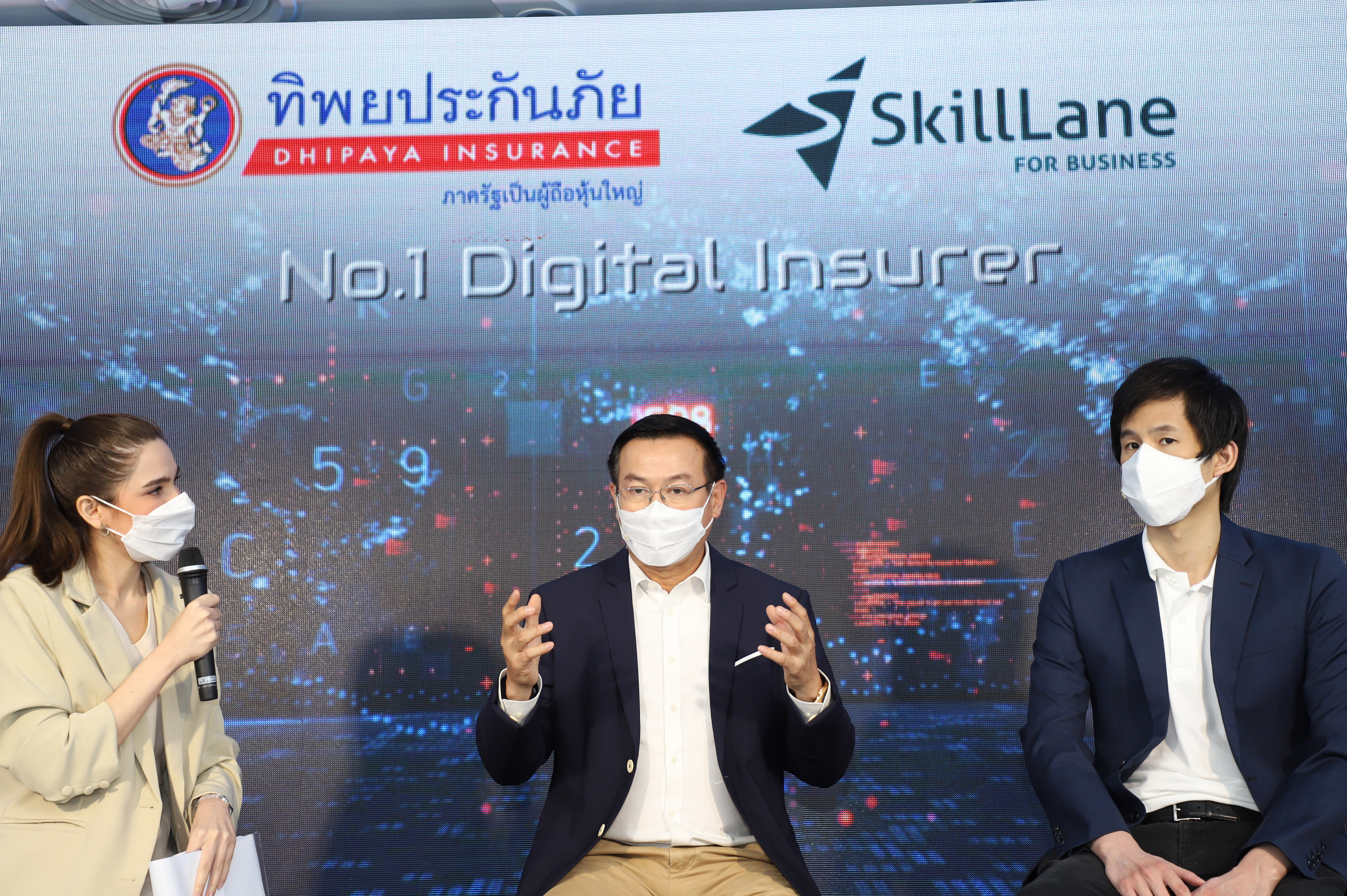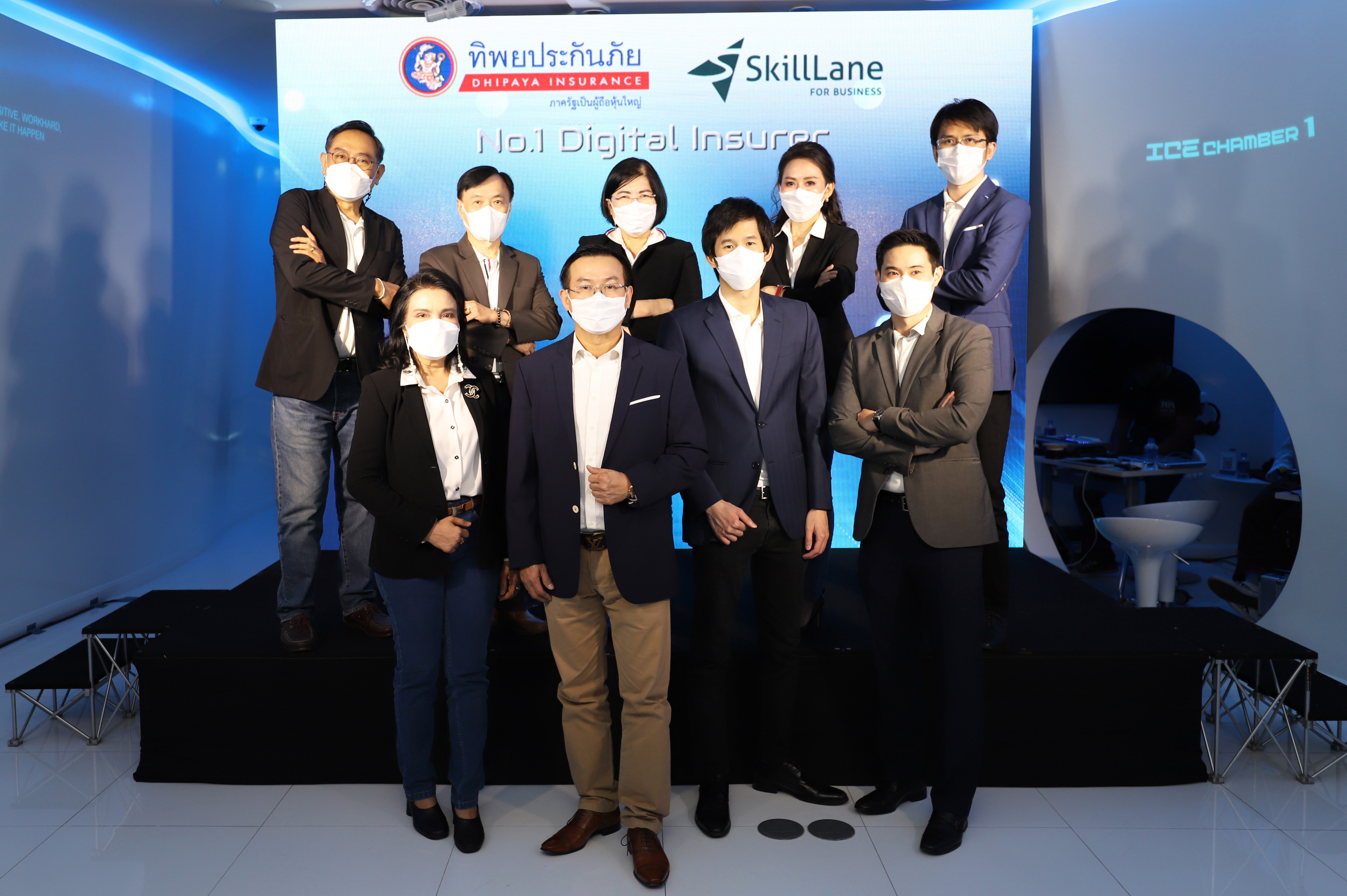 26 พฤศจิกายน 2564 : ดร.สมพร สืบถวิลกุล ประธานเจ้าหน้าที่บริหาร บมจ.ทิพย กรุ๊ป โฮดิ้งส์ และกรรมการผู้จัดการใหญ่ ทิพยประกันภัย จับมือ นายฐิติพงศ์ พิสิฐวุฒินันท์ ประธานเจ้าหน้าที่บริหาร บริษัท สกิลเลน เอดูเคชั่น จำกัด ตอกย้ำความมุ่งมั่นในการเป็นอันดับหนึ่งของ Digital Insurer เพิ่มศักยภาพบุคลากรภายในองค์กร อย่างต่อเนื่อง นำคอร์สออนไลน์ต่างๆที่เป็นประโยชน์จาก SkillLane เกือบ 1,000 หลักสูตร เพื่อให้บุคลากรภายในองค์กร