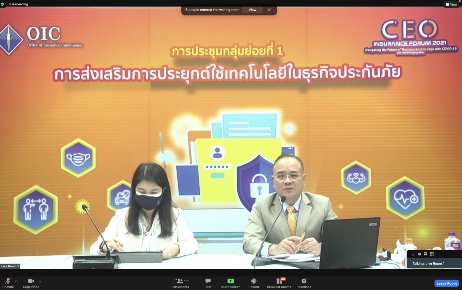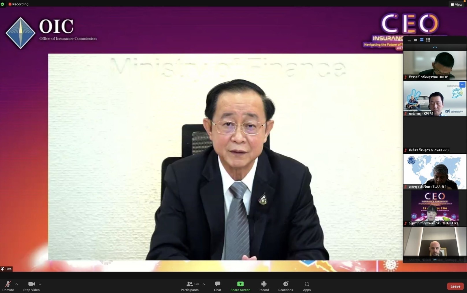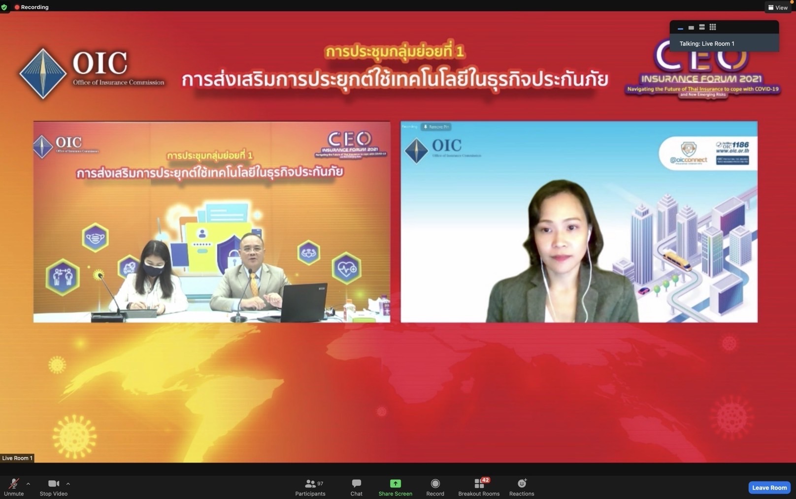 ภายใต้ Theme ของการประชุมคือ “Navigating the Future of Thai Insurance to cope with COVID-19 and New Emerging Risks” ในรูปแบบเสมือนจริง Virtual meeting ผ่านระบบ Zoom เพื่อเป็นเวทีสื่อสารทิศทางและนโยบายในการพัฒนาธุรกิจประกันภัยไทย แลกเปลี่ยนความรู้ ประสบการณ์ ข้อเสนอแนะ และข้อคิดเห็นที่เป็นประโยชน์ร่วมกันระหว่างสำนักงาน คปภ. ภาคธุรกิจประกันภัย และผู้เกี่ยวข้องอีกทั้ง เป็นการแสดงศักยภาพของการบูรณาการความร่วมมือในการพัฒนาธุรกิจประกันภัย