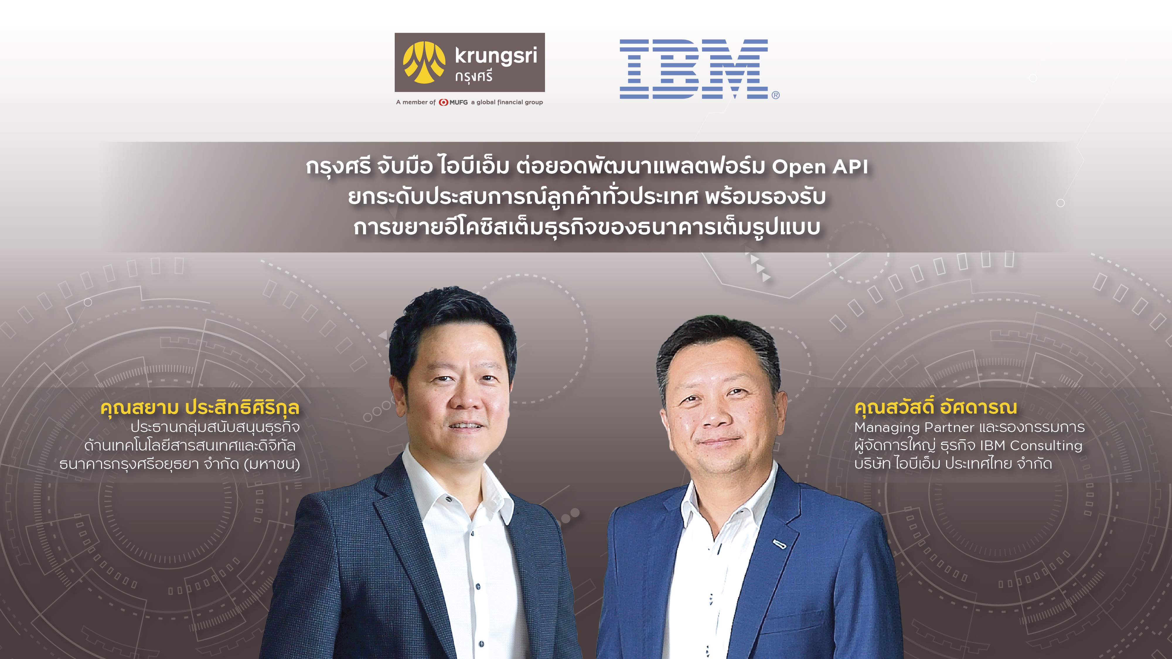 “แพลตฟอร์ม Open API ช่วยให้กรุงศรีและอีโคซิสเต็มคู่ค้าของธนาคารสามารถสร้าง เปิดใช้ บริหารจัดการ และสร้างรายได้จาก API ขณะที่ยังรักษาความเป็นส่วนตัวของลูกค้าไว้ได้อย่างปลอดภัย และมีการนำนโยบายด้านความปลอดภัยมาตรฐานเดียวกันมาใช้ทั่วทั้งสภาพแวดล้อมไฮบริดคลาวด์” นายสวัสดิ์ อัศดารณ Managing Partner และรองกรรมการผู้จัดการใหญ่ ธุรกิจ IBM Consulting ของไอบีเอ็ม ประเทศไทย กล่าว