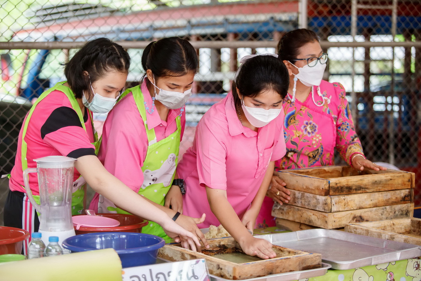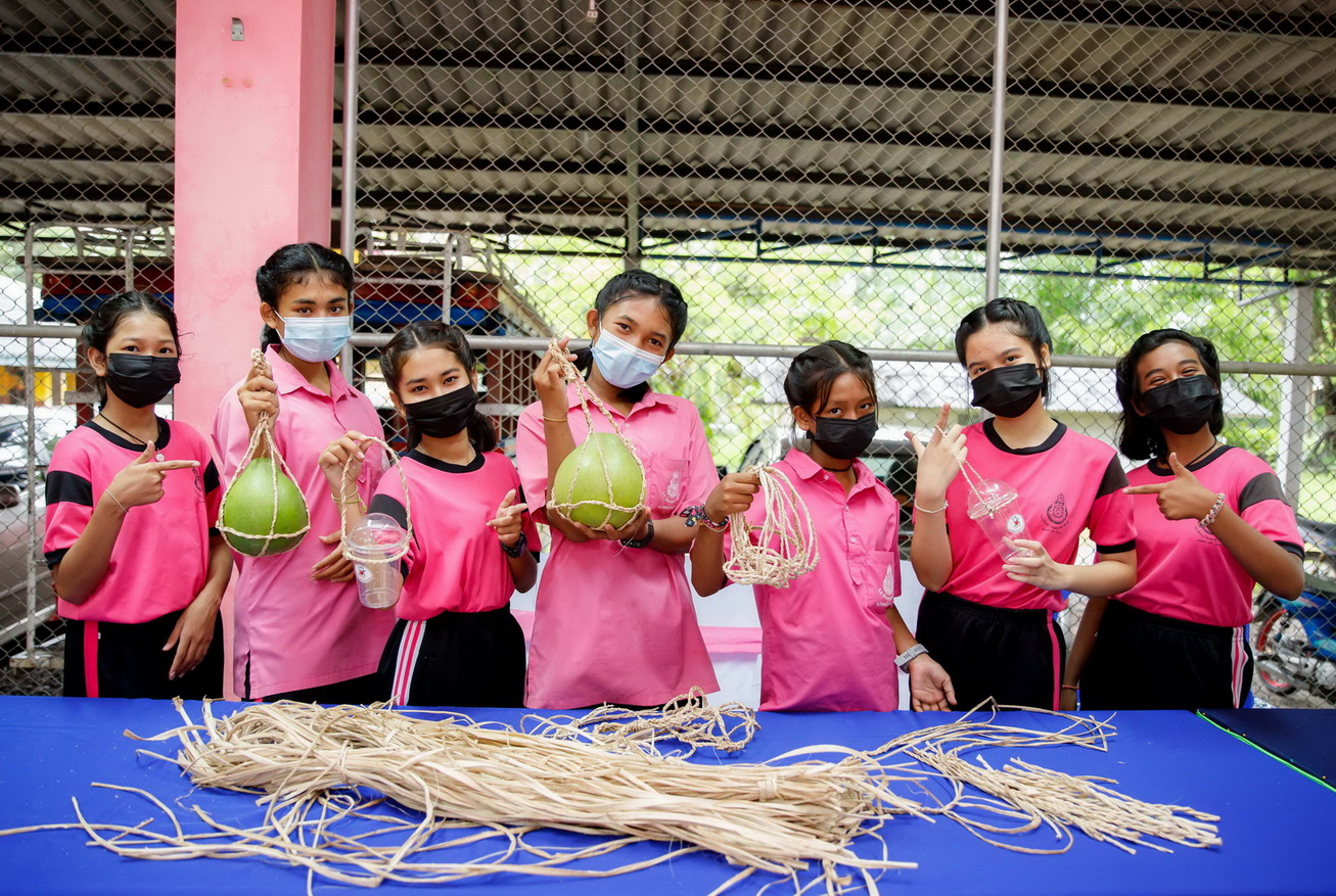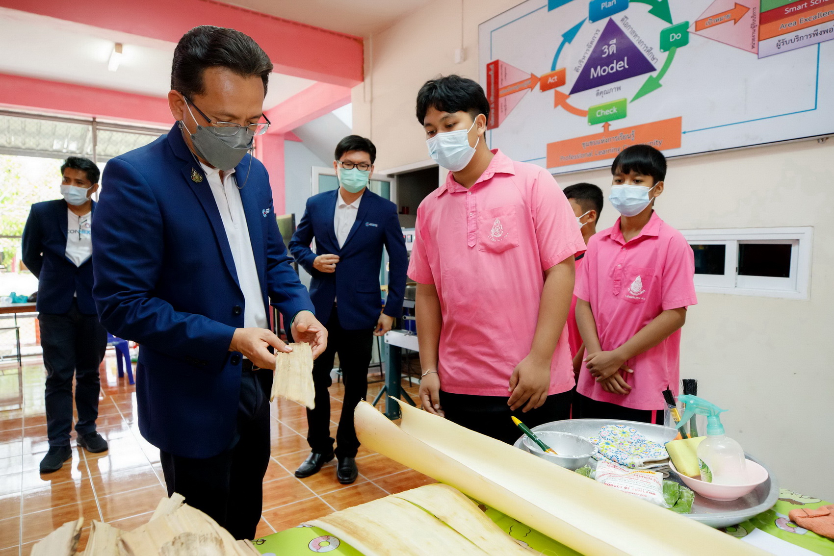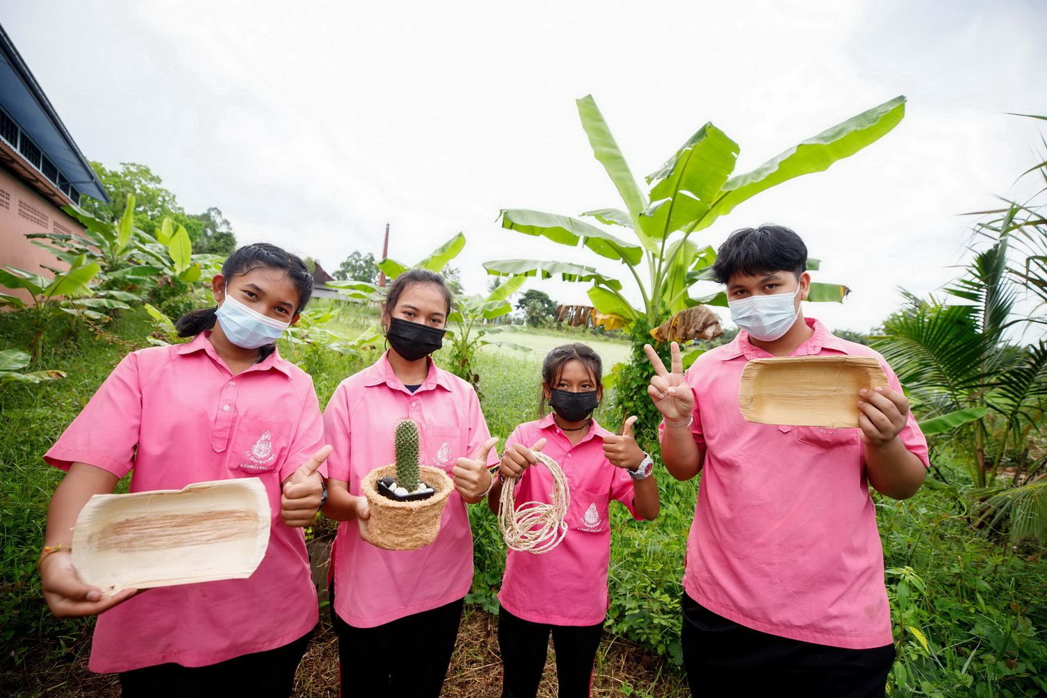 “ทีมผู้นำรุ่นใหม่หรือ School Partner ของซีพี ออลล์เข้าไปมีส่วนร่วมพัฒนาหลักสูตรท้องถิ่น สนับสนุนงบประมาณ และให้คำแนะนำด้านต่างๆ อย่างต่อเนื่องตั้งแต่ปีการศึกษา 2563 จนโครงการดังกล่าวสร้างสรรค์ผลิตภัณฑ์ออกมาจำนวนมาก ทั้ง เชือกกล้วยหูหิ้วถ้วยกาแฟ ถาดใส่อาหารทำจากใบตอง กระถางต้นไม้จากใยกล้วย