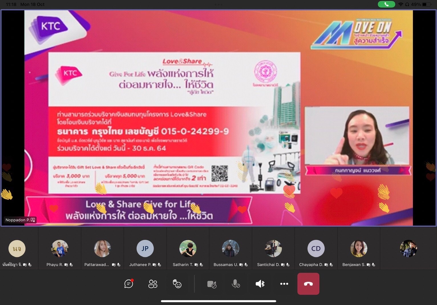 นอกจากนี้ ผู้แนะนำผลิตภัณฑ์และกัลยาณมิตรเคทีซียังได้ร่วมกันระดมเงินทุนในการจัดหาเครื่องมือและอุปกรณ์ทางการแพทย์เพื่อช่วยเหลือผู้ป่วยจากสถานการณ์ Covid-19 ให้กับ “โรงพยาบาลราชวิถี” ภายใต้กิจกรรม “Love & Share ”Give For Life พลังแห่งการให้ ต่อลมหายใจ…ให้ชีวิต “สู้ภัยโควิด” อีกด้วย ![]()