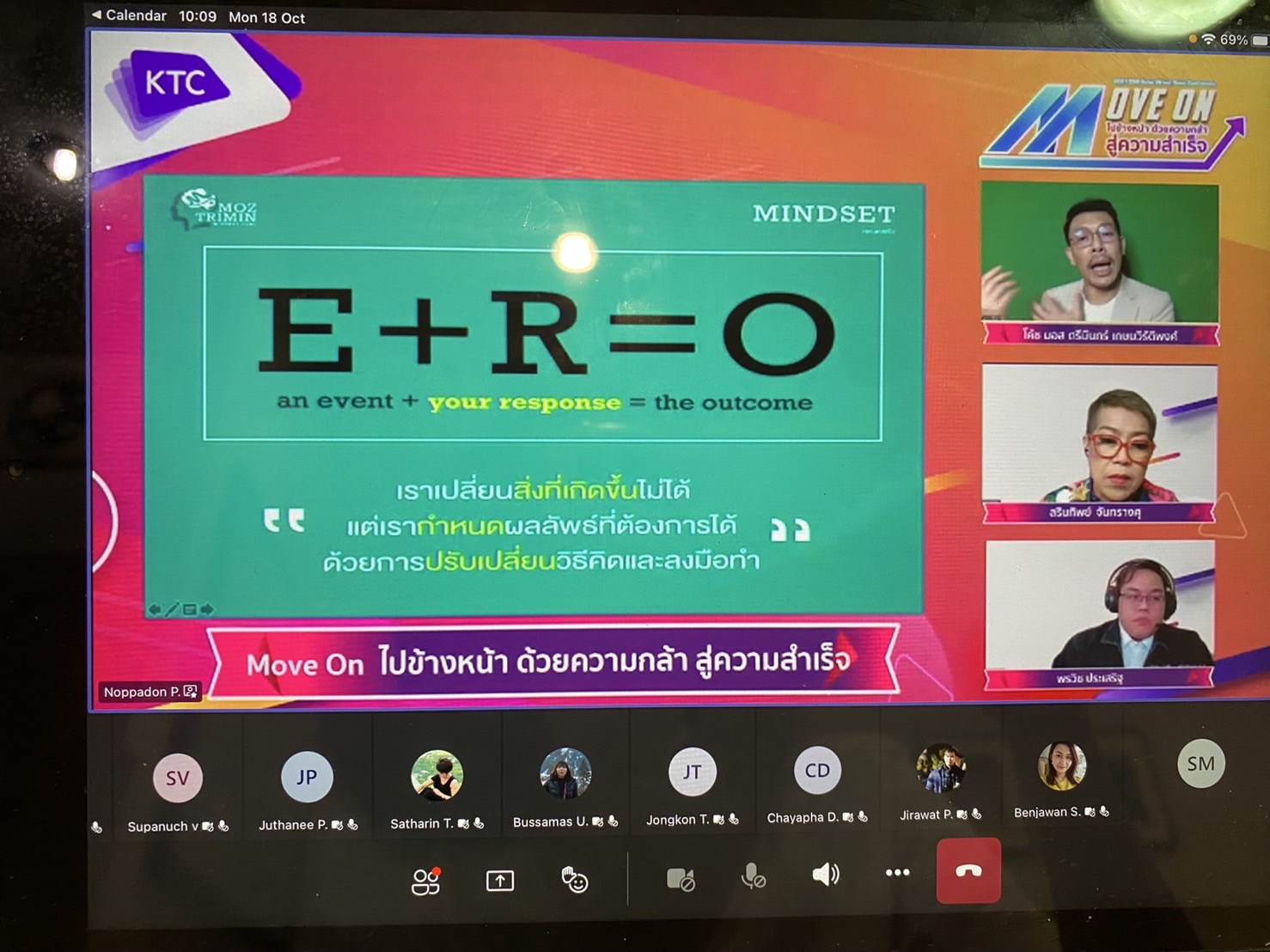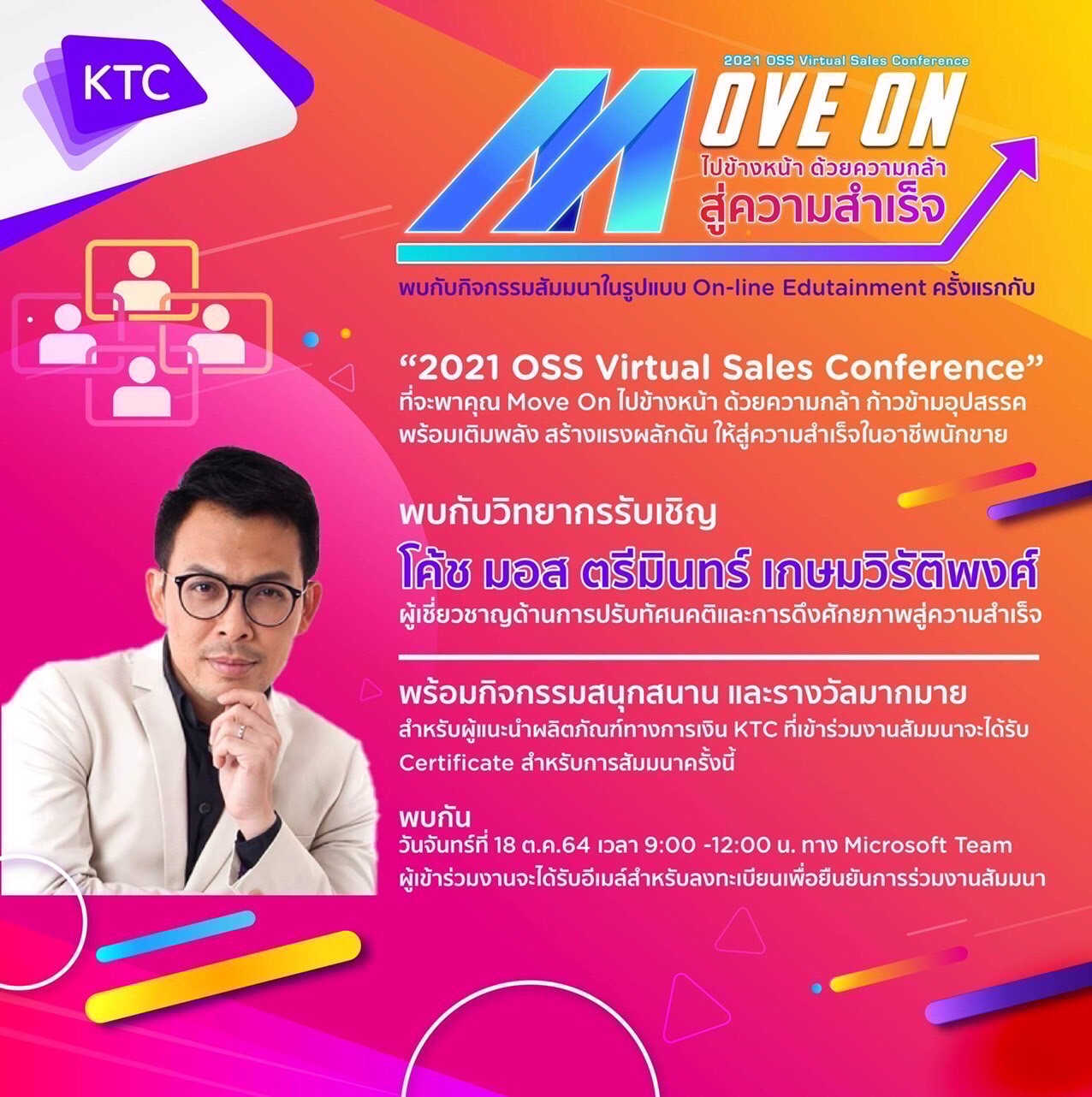 โดยวิทยากรโค้ชมอส ตรีมินทร์ เกษมวิรัติพงศ์ ร่วมแลกเปลี่ยนมุมมองเกี่ยวกับการปรับ Mindset และทัศนคติฝ่าวิกฤตปัจจุบัน เพื่อพิชิตเป้าหมายแห่งความสำเร็จในอาชีพนักขาย อีกทั้งเคทีซียังให้ความสำตัญกับการดูแลสุขภาพเพื่อสนับนุนการทำงานของผู้แนะนำผลิตภัณฑ์ทางการเงินโดยได้นำเสนอชุดอุปกรณ์ป้องกัน Covid-19 กรมธรรม์คุ้มครองกรณีติดเชื้อไวรัส COVID-19 และแผนคุ้มครองประกันสุขภาพเพื่อสุขภาพที่ดีร่วมกัน