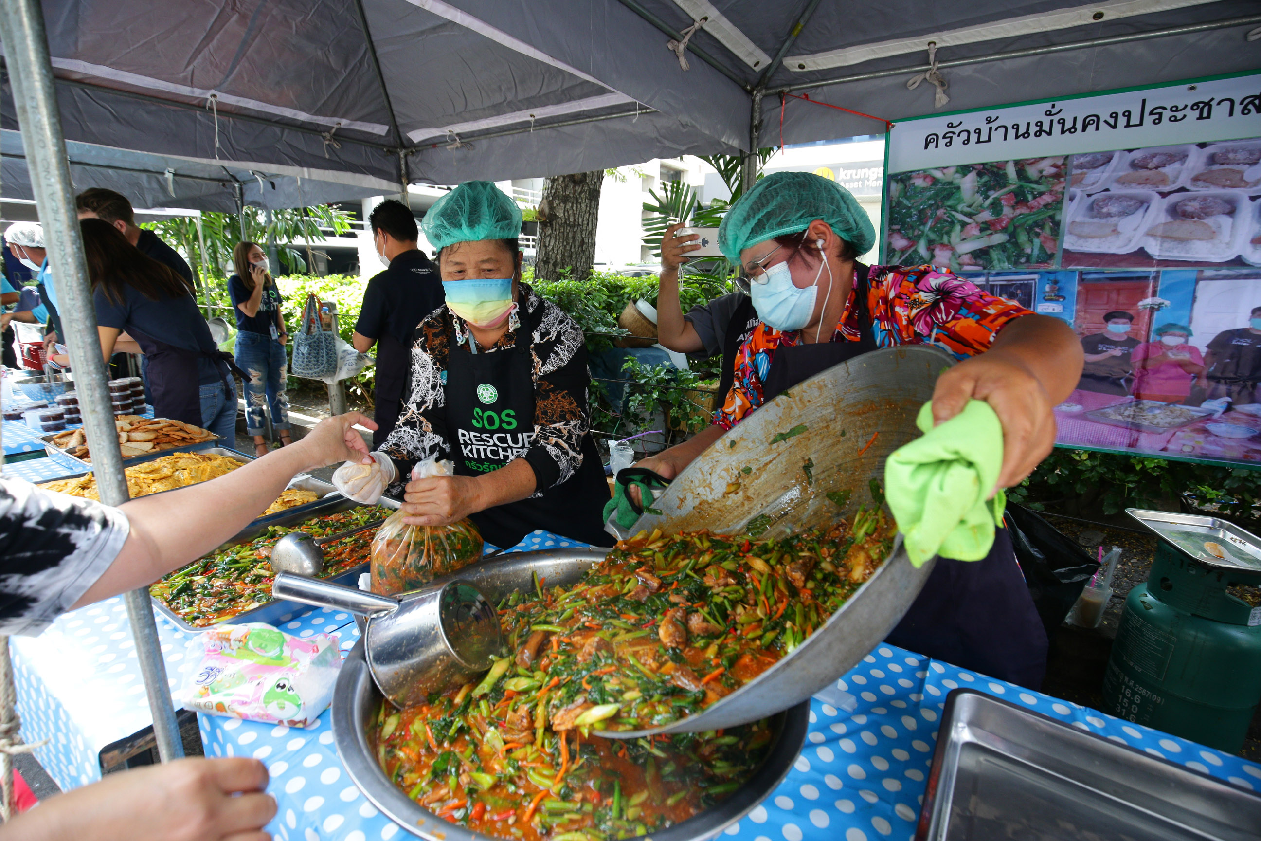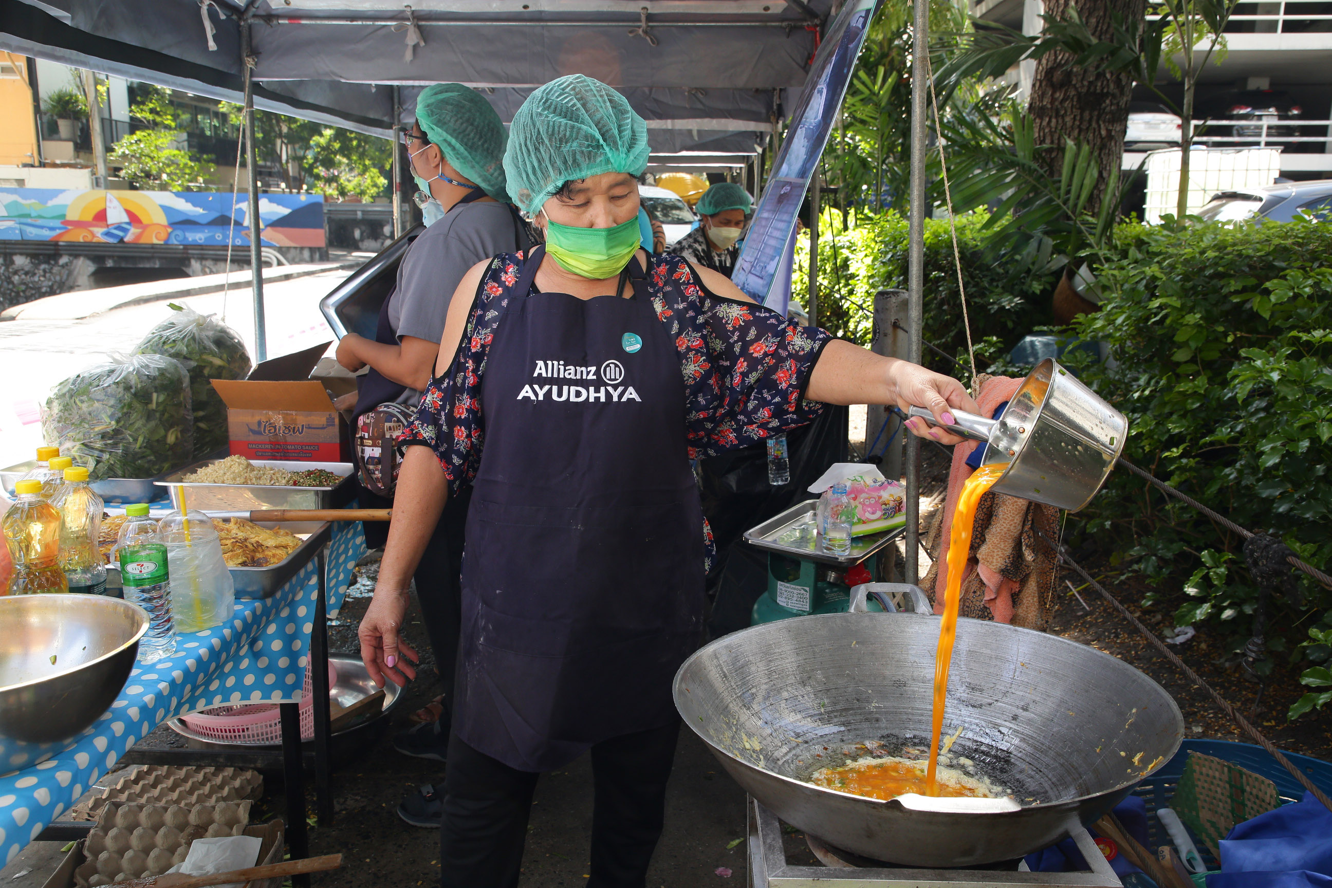 นอกจากนี้ เรายังได้ร่วมมือกับมูลนิธิสโกลาส์ออฟ ซัสทีแนนซ์ หรือ SOS ในการจัดทำครัวชุมชน โดยมีอาสาจากชุมชน พร้อมพนักงาน และตัวแทนที่สนใจ ร่วมกันปรุงอาหาร เพื่อให้กับชุมชนที่ได้รับผลกระทบจากโควิด-19 ซึ่งกิจกรรมนี้ เป็นส่วนหนึ่งของแคมเปญ “1 กรมธรรม์ ปัน 1 ล้านมื้อ” ซึ่งอลิอันซ์ อยุธยา ริเริ่มขึ้นในช่วงกันยายน – ธันวาคม