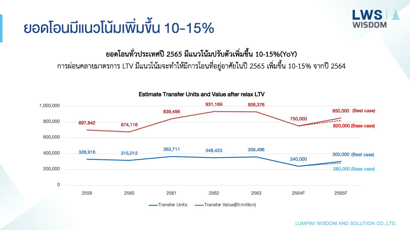 ซึ่งเป็นผลมาจากการที่รัฐบาลมีมาตรการเปิดประเทศ ให้มีการเดินทางท่องเที่ยวได้เพิ่มขึ้น รวมถึงมาตรการผ่อนคลายหลักเกณฑ์การกำกับดูแลสินเชื่อเพื่อที่อยู่อาศัยและสินเชื่ออื่นที่เกี่ยวเนื่องกับสินเชื่อเพื่อที่อยู่อาศัย (Loan-to-Value: LTV) เป็นการชั่วคราว โดยกำหนดให้เพดานอัตราส่วนเงินให้สินเชื่อต่อมูลค่าหลักประกัน (LTV ratio) เป็น100% สำหรับที่อยู่อาศัยทุกประเภท ซึ่งมีผลจนถึงวันที่ 31 ธันวาคม 2565