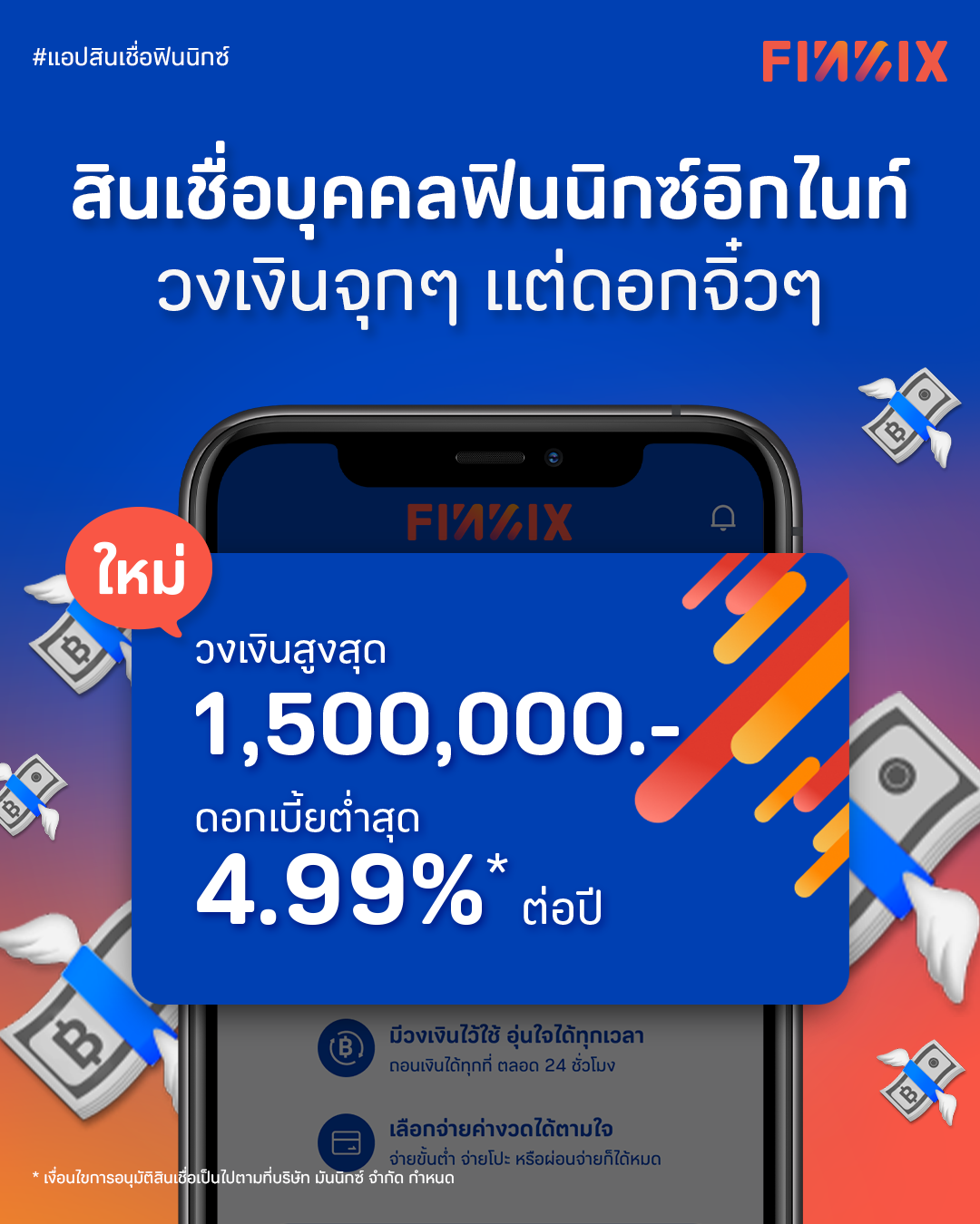 ปัจจุบันสินเชื่อนาโนไฟแนนซ์ ฟินนิกซ์ (FINNIX) ให้วงเงินกู้สูงสุดถึง 1 แสนบาท อย่างไรก็ตาม บริษัทฯ พบว่า ผู้ที่ดาวน์โหลดแอปฯ จำนวนหนึ่งเป็นมนุษย์เงินเดือนและมีความต้องการวงเงินสินเชื่อมากกว่า 1 แสนบาท เพื่อตอกย้ำความสำเร็จในการทำตลาดสินเชื่อดิจิทัล และตอบโจทย์ความต้องการของกลุ่มมนุษย์เงินเดือน