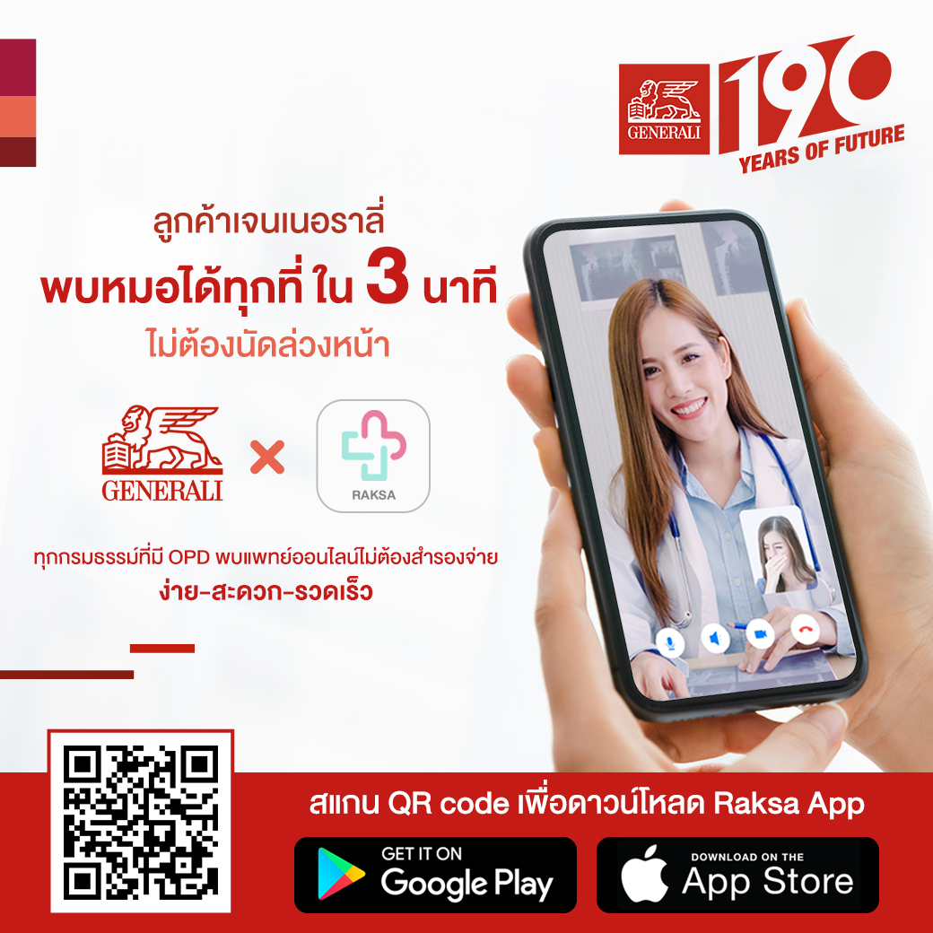 พร้อมทั้งการมอบบริการพิเศษต่าง ๆ ไปจนถึงการดูแลรักษา อาทิ บริการโทรเวชกรรม (Telemedicine) ที่ได้ร่วมมือกับพันธมิตร อำนวยความสะดวกให้แก่กลุ่มลูกค้า ที่ถือกรมธรรม์ที่มีผลประโยชน์ค่ารักษาพยาบาลผู้ป่วยนอก (OPD) ทั้งประกันภัยรายบุคคลและประกันภัยแบบกลุ่ม สามารถปรึกษาปัญหาสุขภาพกับแพทย์ผู้เชี่ยวชาญผ่านแอปพลิเคชัน Raksa แบบเรียลไทม์ 24 ชั่วโมง โดยไม่ต้องสำรองจ่าย