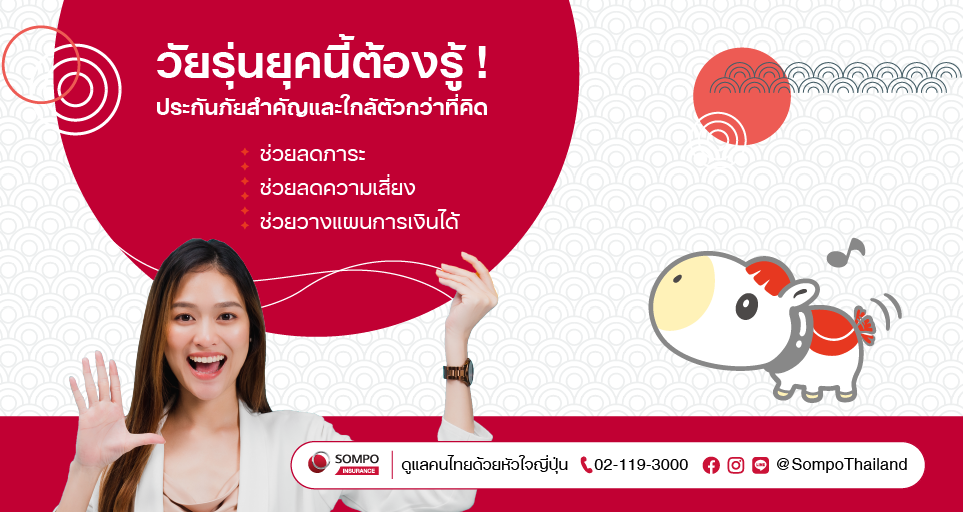 โดยซมโปะ ประกันภัย ผู้ให้บริการด้านประกันภัย มีประกันภัยหลากหลายรูปแบบที่ตอบโจทย์คนรุ่นใหม่ โดยเฉพาะเด็กจบใหม่ และ วัยที่เริ่มทำงาน โดยสามารถดูรายละเอียดเพิ่มเติมได้ทาง https://www.sompo.co.th/personal หรือ ติดต่อ 02-119-3000 ![]()