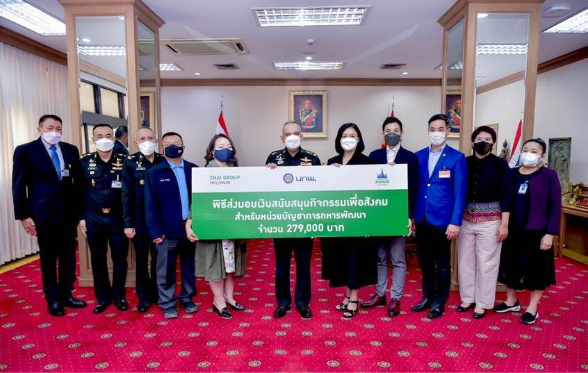 19 มกราคม 2565 : พลเอก นเรนทร์ สิริภูบาล ประธานกรรมการดำเนินการ สหกรณ์ออมทรัพย์หน่วยบัญชาการทหารพัฒนา (กลาง) และคณะกรรมการสหกรณ์ฯ ร่วมรับมอบเงินสนับสนุนกิจกรรมเพื่อสังคม จำนวน 279,000 บาท จากบริษัท อาคเนย์ประกันชีวิต จำกัด (มหาชน) หนึ่งในสายธุรกิจหลักด้านประกันและการเงิน ไทยกรุ๊ป โฮลดิ้งส์ นำโดย ภฤตยา สัจจศิลา กรรมการผู้จัดการ (ที่ 5 จากขวา) พร้อมคณะผู้บริหาร ร่วมส่งมอบ ณ กองบัญชาการกองทัพไทย เพื่อช่วยเหลือครอบครัวสหกรณ์ฯ หน่วยบัญชาการทหารพัฒนา อาทิ การให้ทุนการศึกษาในพื้นที่ห่างไกล และการทำกิจกรรมจิตอาสาเพื่อสาธารณประโยชน์ให้กับประชาชนทั่วประเทศ ซึ่งสอดคล้องกับนโยบายของบริษัทฯ ที่มุ่งส่งเสริมการพัฒนาสุขภาพชีวิตเพื่อคนไทยอย่างยั่งยืน ![]()