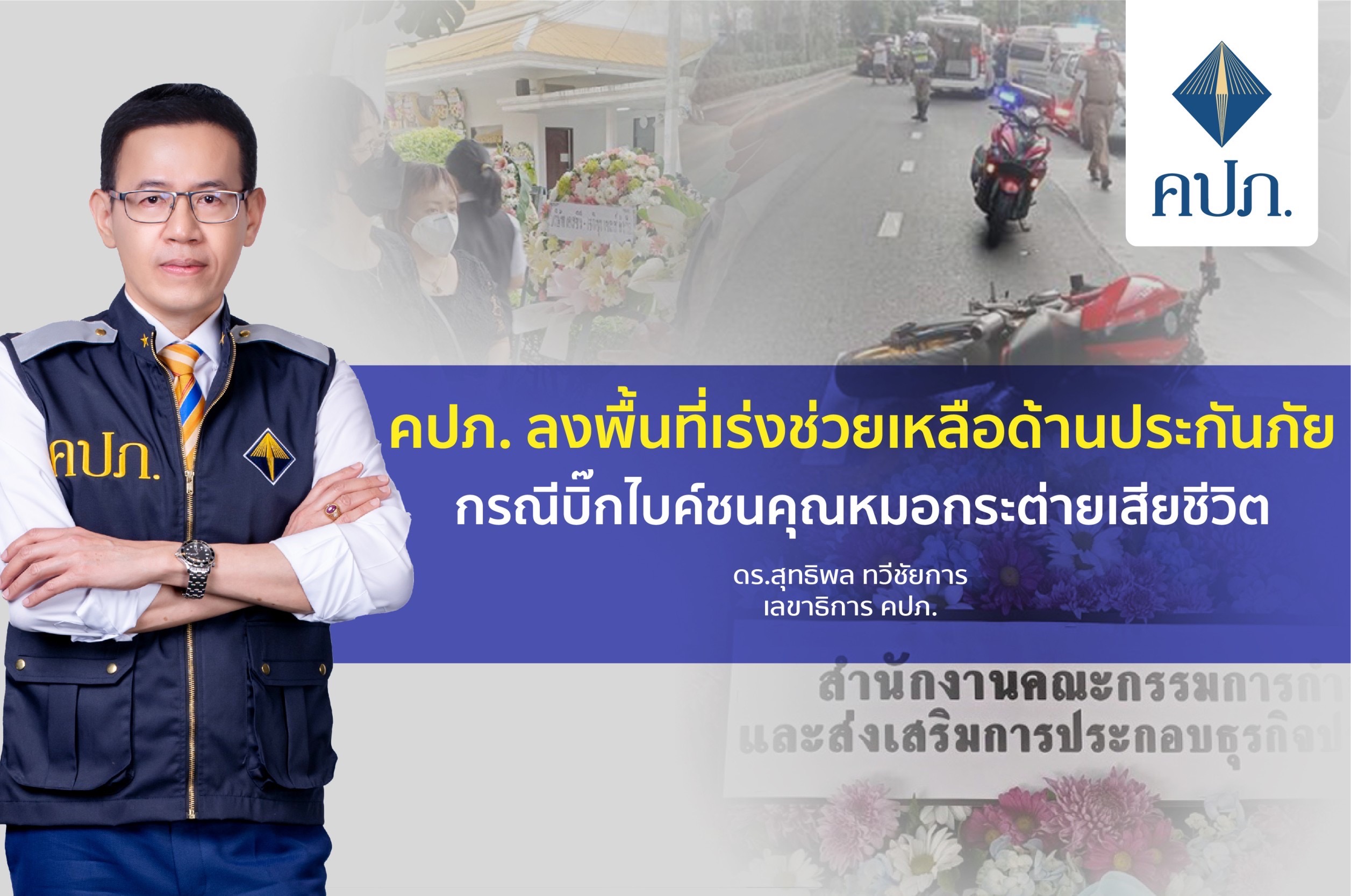 24 มกราคม 2565 : ดร. สุทธิพล ทวีชัยการ เลขาธิการคณะกรรมการกำกับและส่งเสริมการประกอบธุรกิจประกันภัย (เลขาธิการ คปภ.) เปิดเผยว่า จากกรณีเกิดอุบัติเหตุรถจักรยานยนต์บิ๊กไบค์เฉี่ยวชนคนเดินข้ามถนน บริเวณทางม้าลาย หน้าสถาบันไตภูมิราชนครินทร์ ถนนพญาไท จนเป็นเหตุให้แพทย์หญิง วราลัคน์ สุภวัตรจริยากุล (คุณหมอกระต่าย) แพทย์ผู้ชำนาญการด้านจักษุวิทยา ภาควิชาจักษุวิทยา คณะแพทย์ศาสตร์ จุฬาลงกรณ์มหาวิทยาลัย เสียชีวิตในที่เกิดเหตุ