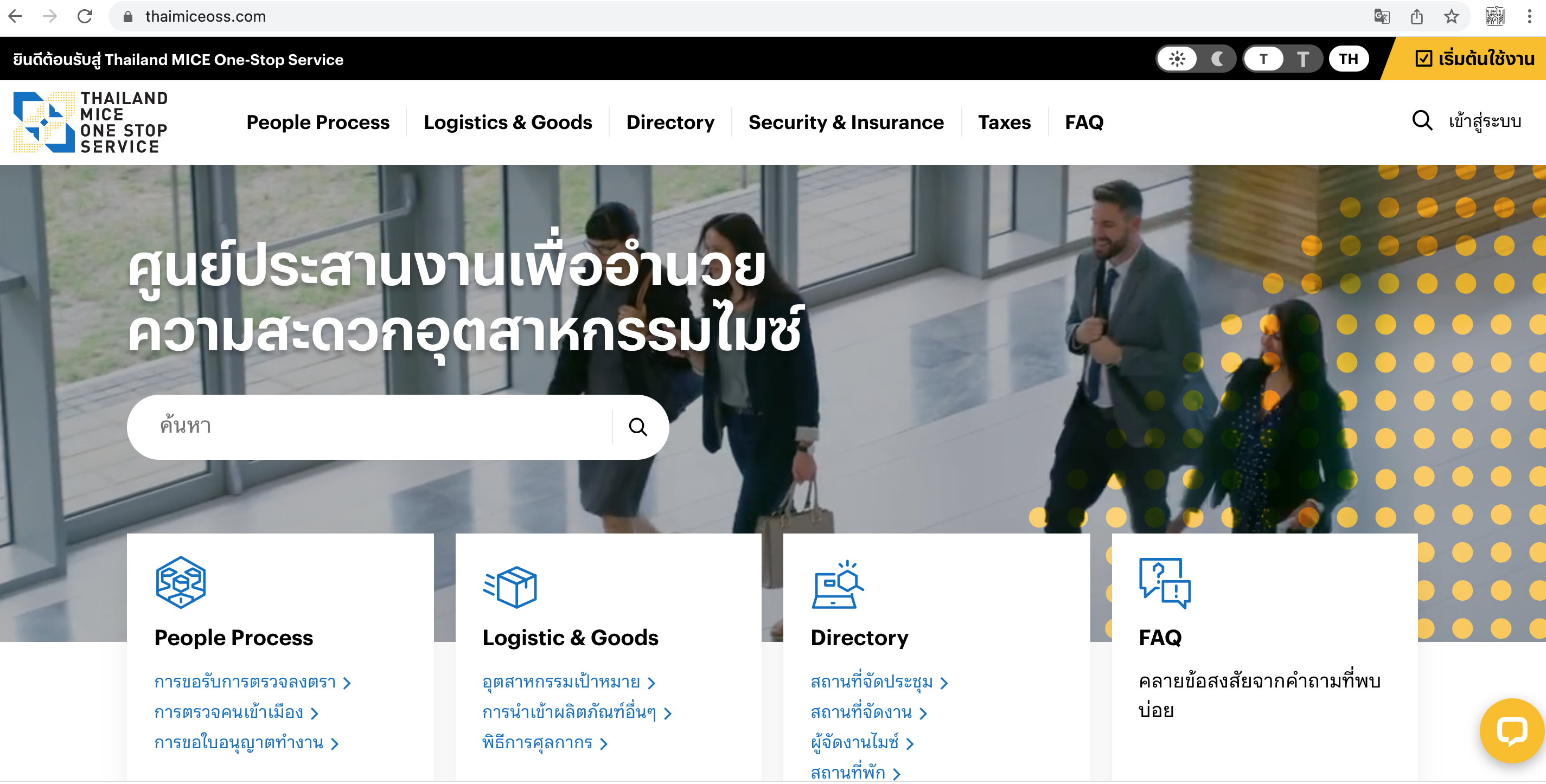 www.thaimiceoss.com หรือศูนย์ประสานงานเพื่ออำนวยความสะดวกอุตสาหกรรมไมซ์นี้ จะให้บริการด้านข้อมูลต่าง ๆ แก่ผู้ประกอบการไมซ์ทั้งภาษาไทยและภาษาอังกฤษ ในเรื่องเกี่ยวข้องกับระเบียบปฏิบัติที่ผู้จัดงานไมซ์ควรรู้กรณีที่จะต้องนำคนหรือผลิตภัณฑ์เข้ามาเพื่อการจัดงานในประเทศไทย อาทิเช่น การขอวีซ่า การขอใบอนุญาต พิธีการศุลากร การชำระภาษี ฯลฯ นอกจากนี้ เว็บไซต์ยังมีจุดเด่นด้านการออกแบบให้ดูทันสมัยสวยงาม ประมวลข้อมูลและขั้นตอนเกี่ยวกับกฎระเบียบของภาครัฐให้เข้าใจง่าย มีระบบการใช้งานที่ไม่ซับซ้อน รวมถึงมีการอัปเดตสถานการณ์และมาตรการต่าง ๆ ในประเทศไทยที่ส่งผลกระทบต่ออุตสาหกรรมไมซ์ ![]()
