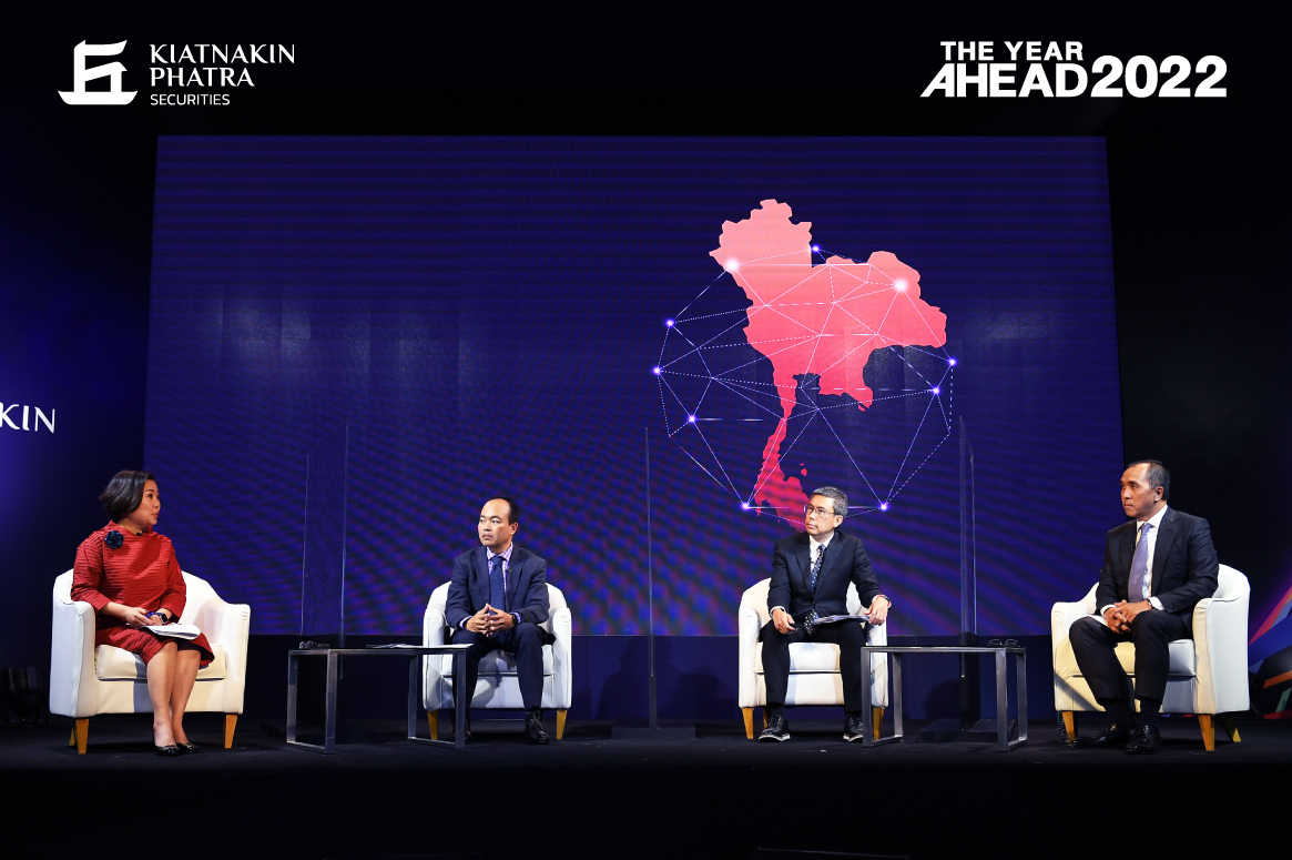 นอกจากนี้ นางสาวพรทิพย์ ทันตสุวรรณ หัวหน้าฝ่ายวิเคราะห์เศรษฐกิจการลงทุน บริษัทหลักทรัพย์ เกียรตินาคินภัทร จำกัด (มหาชน) (บล.เกียรตินาคินภัทร) ยังให้ข้อมูลเพิ่มด้านกลยุทธ์การลงทุน โดยคาดการณ์ว่าสำหรับปี 2022 นี้ ตลาดหุ้นไทยจะปรับฐานในช่วงครึ่งปีแรกก่อนจะฟื้นตัวขึ้นในครึ่งปีหลัง เนื่องจากการฟื้นตัวที่อ่อนแอของเศรษฐกิจตามการฟื้นตัวที่ช้าของการท่องเที่ยว และมีปัจจัยลบจากการใช้นโยบายการเงินที่ตึงตัวมากขึ้นของธนาคารกลางสหรัฐฯ ในครึ่งปีแรก ดังนั้นการปรับลดลงของตลาดในช่วงครึ่งปีแรกจึงเป็นโอกาสเข้าซื้อ