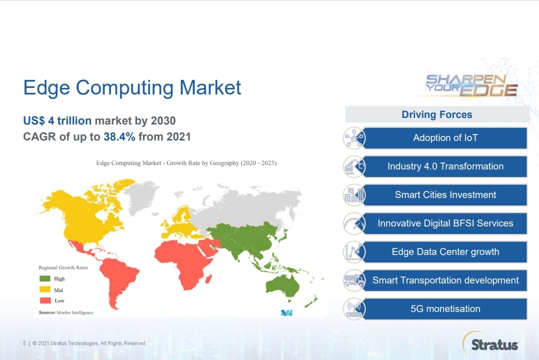 "เอดจ์ คอมพิวติ้ง ได้จัดการกับข้อจำกัดของโมเดลคลาวด์ คอมพิวติ้งโดยแจกจ่ายทรัพยากรไปยังอุปกรณ์ระยะไกลที่ใช้กระบวนการและแอปพลิเคชันที่มีความสำคัญต่อธุรกิจ วิธีนี้ช่วยหลีกเลี่ยงความท้าทายด้านความห่างไกลและศูนย์ข้อมูลแบบรวมศูนย์ที่มีค่าใช้จ่ายสูง" นายซาเวียร์ โก๊ะ ผู้อำนวยการฝ่ายขายประจำอาเซียน ตอนเหนือ บริษัท สเตรตัส เทคโนโลยีส์ กล่าวและว่า "แพลตฟอร์มซีโร-ทัช ซีทีซี เอดจ์ คอมพิวติ้ง (Zero-touch ztC Edge Computing) ของ สเตรตัส ได้รับการออกแบบให้ติดตั้ง ปรับใช้ และจัดการได้ง่ายโดยไม่ต้องใช้ทักษะพิเศษ
