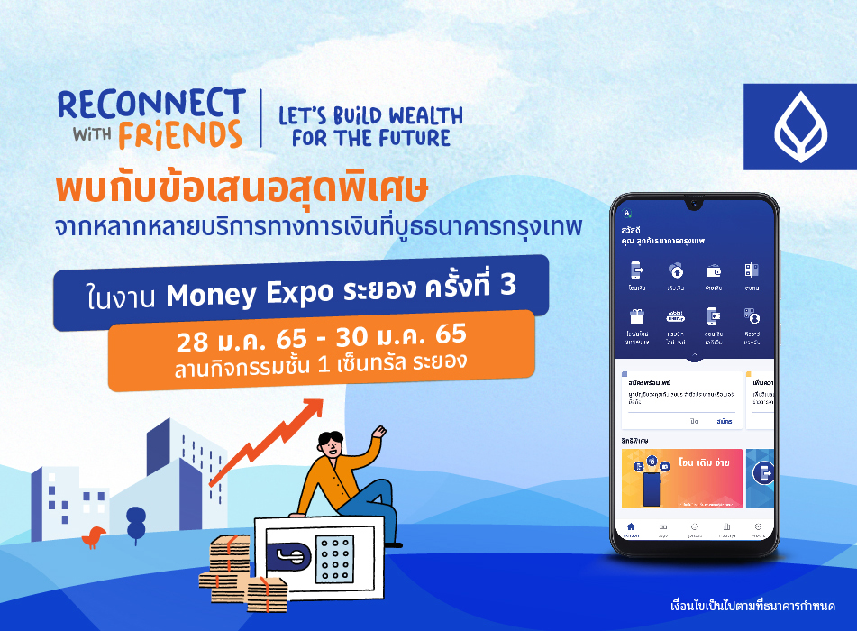 จ.ระยอง 27 มกราคม 2565 : นายทวีลาภ ฤทธาภิรมย์ กรรมการผู้ช่วยผู้จัดการใหญ่ ธนาคารกรุงเทพ จำกัด (มหาชน) เปิดเผยว่า ธนาคารกรุงเทพได้เข้าร่วมงานมหกรรมการเงินระยอง ครั้งที่ 3 หรือ Money Expo Rayong 2021 ซึ่งจัดขึ้นระหว่าง 28-30 มกราคม 2565 ณ ลานโปรโมชั่น ชั้น 1 ศูนย์การค้าเซ็นทรัลพลาซา ระยอง โดยนำผลิตภัณฑ์และบริการทางการเงิน รวมทั้งข้อเสนอโปรโมชั่นพิเศษที่น่าสนใจสำหรับพี่น้องชาวระยองและพื้นที่ภาคตะวันออกที่มีความสนใจด้านการวางแผนทางการเงิน การลงทุน รวมทั้งชอบติดตามเทรนด์ใหม่ๆ ในโลกการเงิน เพื่อเป็นทางเลือกสำหรับผู้กำลังมองหารูปแบบการบริหารความมั่งคั่ง