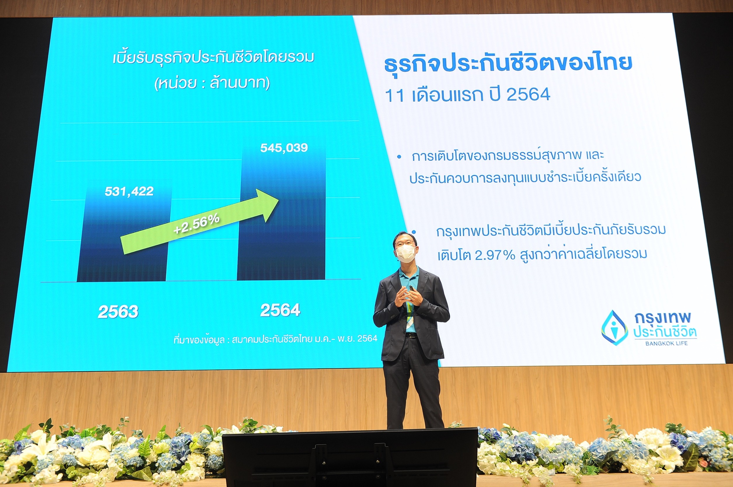 4 กุมภาพันธ์ 2565 : นายโชน โสภณพนิช กรรมการผู้จัดการใหญ่และประธานเจ้าหน้าที่บริหาร บริษัท กรุงเทพประกันชีวิต จำกัด (มหาชน) หรือ BLA เปิดเผยว่า ในปี 2564 แม้ธุรกิจประกันชีวิตโดยรวมจะได้รับผลกระทบจากภาวะเศรษฐกิจที่ซบเซา กำลังซื้อผู้บริโภคลดลง จากการระบาดของเชื้อไวรัสโคโรน่า 2019 (โควิด-19) แต่โดยภาพรวมช่วง 11 เดือนแรกของปี 2564 เบี้ยประกันชีวิตรับรวมทั้งระบบอยู่ที่ 545,039 ล้านบาท เติบโต 2.56% เมื่อเทียบจากช่วงเดียวกันปีก่อน (ที่มา : สมาคมประกันชีวิตไทย) โดยเป็นการเติบโตของกรมธรรม์ประกันสุขภาพ (Health Insurance) และประกันชีวิตควบการลงทุน(Unit-Linked) แบบชำระเบี้ยครั้งเดียว(Single premium) สำหรับผลการดำเนินงานของบริษัทฯ สามารถเติบโตได้สูงกว่าค่าเฉลี่ยโดยรวม