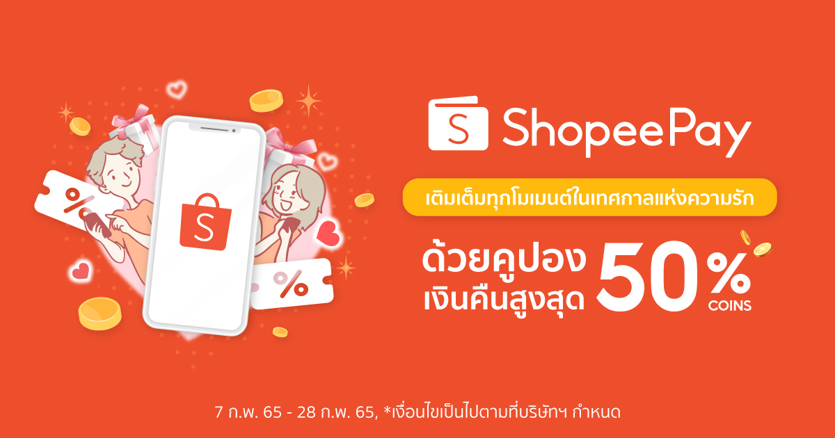 7 กุมภาพันธ์ 2565 : กุมภาพันธ์นี้ไม่มีเหงาอีกต่อไป ‘ShopeePay’ (ช้อปปี้เพย์) ผู้ให้บริการด้านการชำระเงินผ่าน Mobile Wallet แบบครบวงจรบนช้อปปี้ เตรียมปาหัวใจรัว ๆ ใส่ให้ทุกสายสัมพันธ์แห่งรัก ไม่ว่าจะเป็นสายคลั่งรักสุดสวีท คู่พี่น้อง แก๊งเพื่อน หรือคนโสดก็ไม่น้อยหน้าใคร ด้วยโปรโมชันรับเทศกาลแห่งความรักให้อินเลิฟในทุกโมเมนต์ของชีวิตแบบขั้นสุดกับ Shopee Coins Cashback สูงสุด 50% และส่วนลดอื่น ๆ อีกเพียบ ตั้งแต่วันนี้จนถึง 28 กุมภาพันธ์นี้ บนแอปพลิเคชันช้อปปี้เท่านั้น