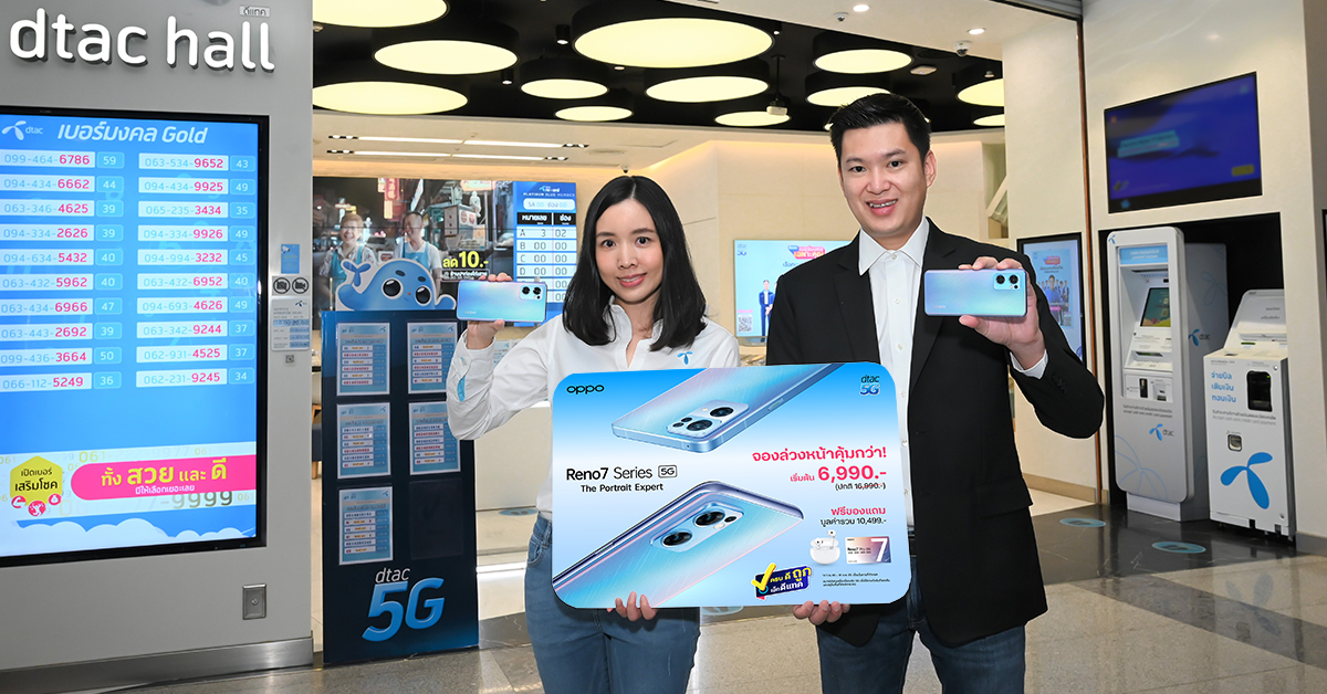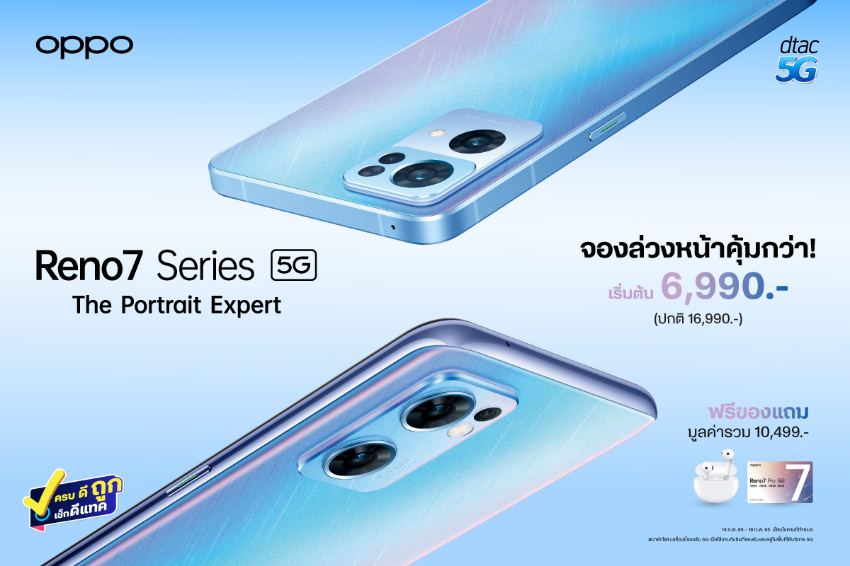 เตรียมสัมผัสอีกขั้นของวิดีโอและภาพพอร์ตเทรตไปกับ OPPO Reno7 Series 5G ในราคาสุดคุ้ม พร้อมสิทธิพิเศษมากมายเมื่อจองผ่านดีแทค ตั้งแต่วันนี้ – 18 กุมภาพันธ์นี้
